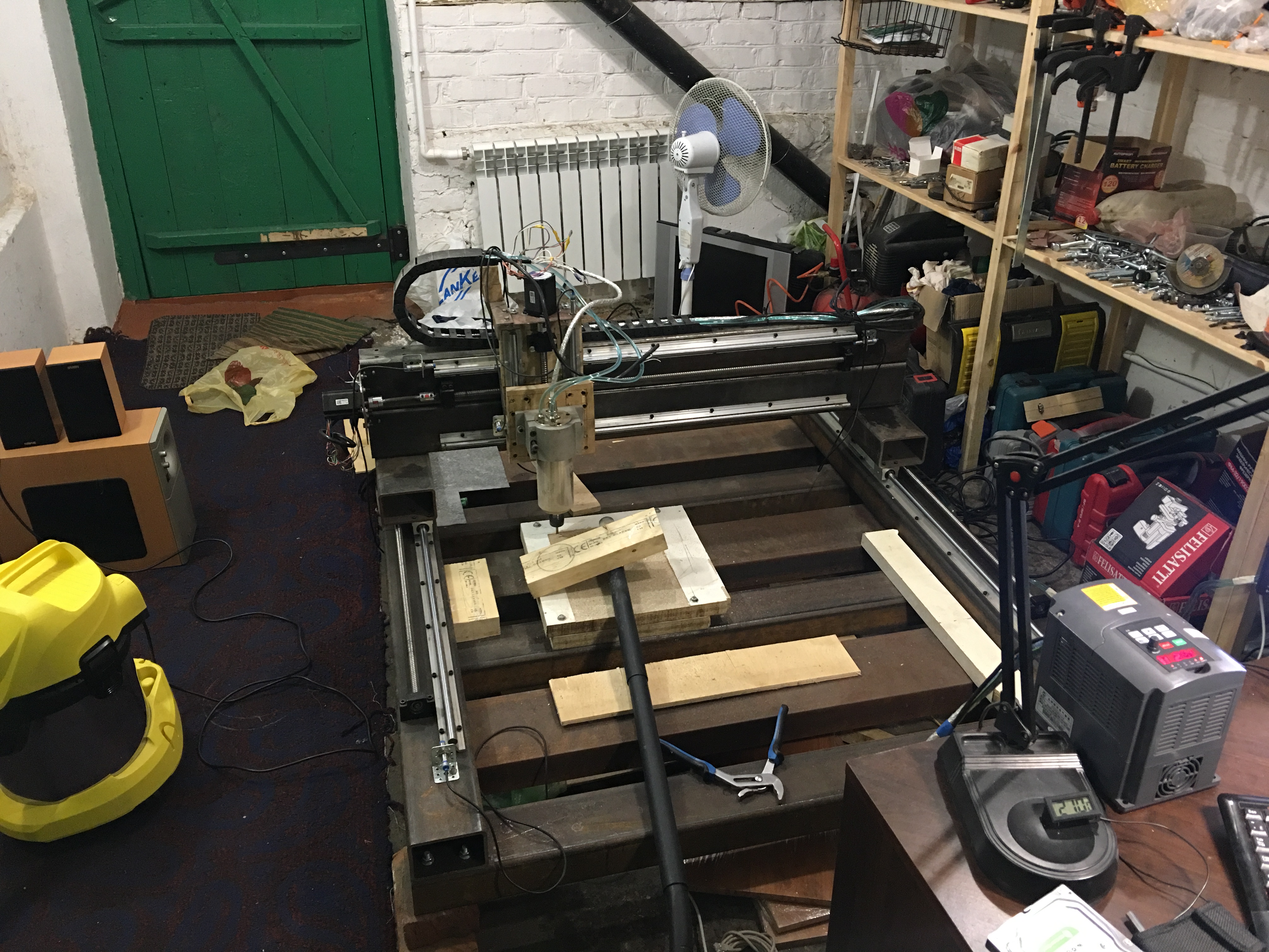 крепление шпинделя знаю что не верно, просто это единственное положение при котором я достаю до стола фрезой (ошибки в расчетах) (причем пришлось подкладывать две столешницы)