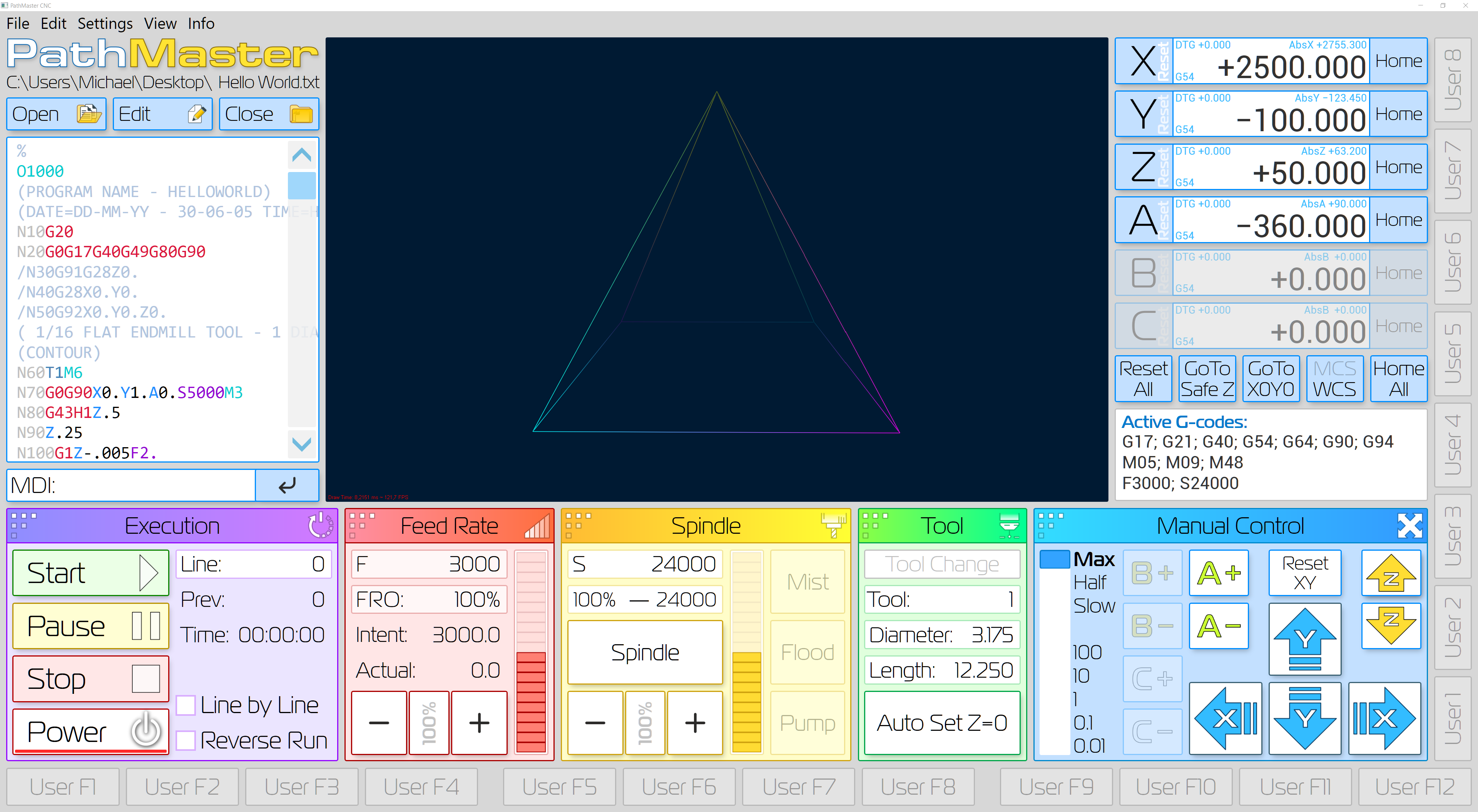 Если когда-нибудь руки дойдут — сделаю отображение после запуска программы и возможность выбора и загрузки последних (созданных и последних использованных) файлов в окне УП или окне траектории.