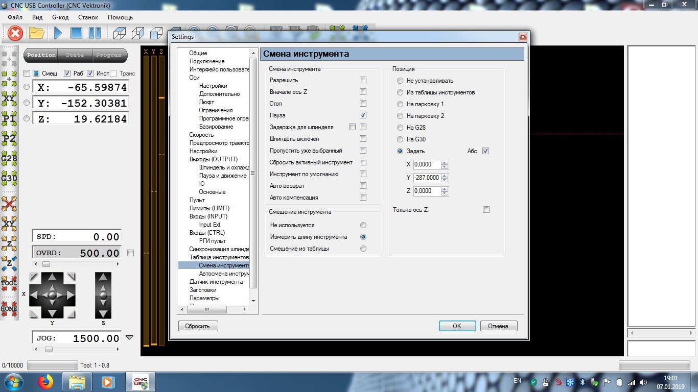 P.S. Я даже и не использую эту функцию, использую подвижный датчик, так что не помогу, все забылось. При смене инструмента выставляю вручную ноль и запускаю продолжение проги, зато надежно и без косяков. Я даже кнопку TOOL в последнее время не использую, вручную в любом удобном месте опустил до датчика, в окошке Z вписал его толщину и порядок.