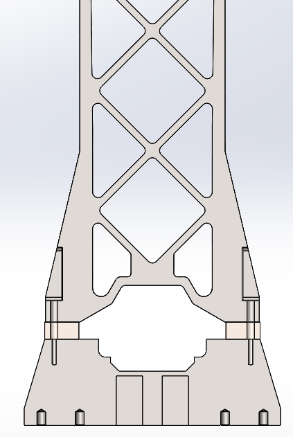 Проставки внутренние, но это сути не должно менять, так как посадочное место станины само по себе гнется как жесть. Поэтому просчитывалась жесткость посадки колонны через эти проставки на гиперосновании (плиту).