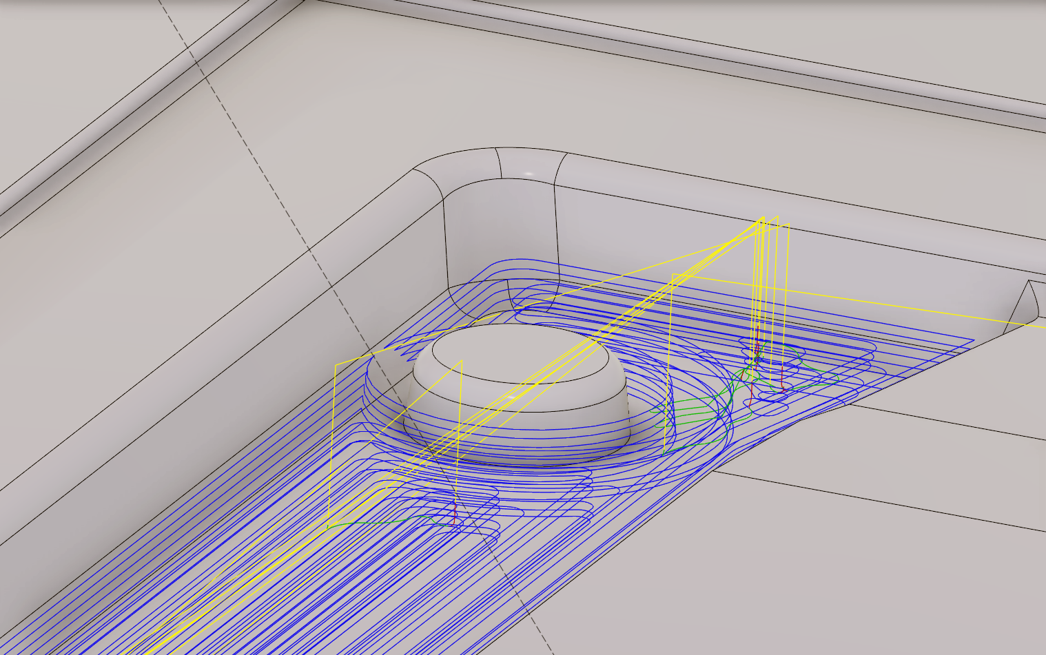 Здесь зазор между круглой бобышкой и стенкой: Здесь узкий карман: Пытаюсь их осилить фрезой 4мм, в стратегии Pocket Clearing ставлю галку Rest Machining, Source = From previous operation(s). На выходе имею пустые траектории. Предыдущая стратегия - тоже Pocket Clearing, фрезой 10мм, больше никаких.