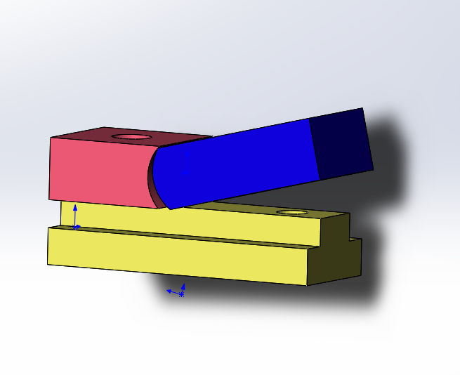 Синий прижим болтом опускается и фиксирует деталь. Проект, кому интересно. В принципе я хотел сделать движущуюся часть с выемкой и шайбой полукруглой ( в проекте это есть), но пока что поленился