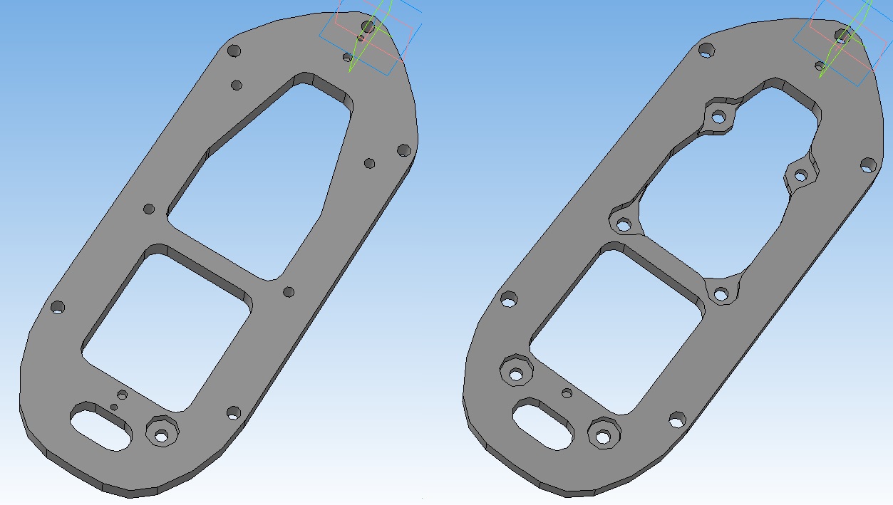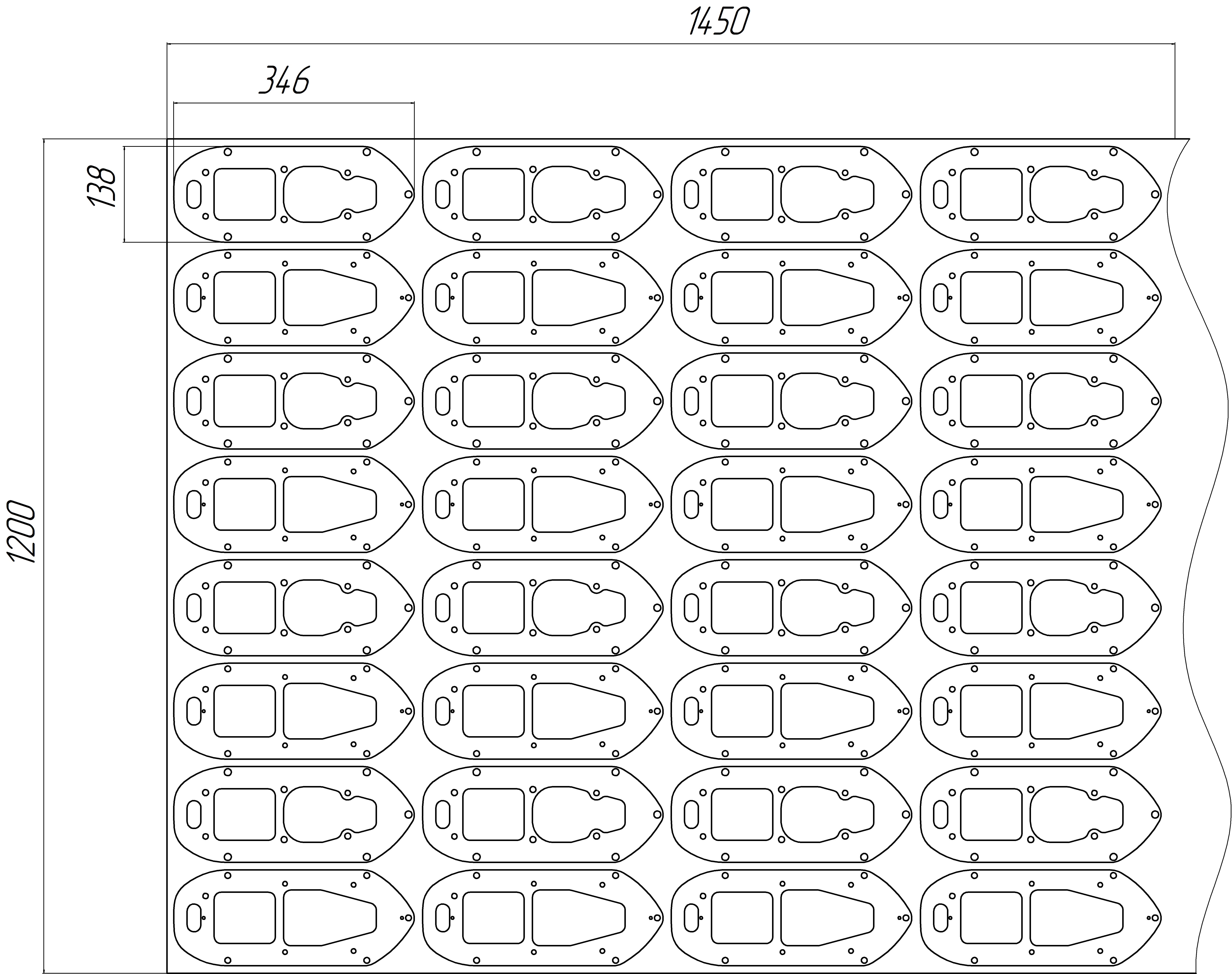 Материал Д16, материал ваш. 16 комплектов из двух разных деталей, одинаковых габаритов 346 х 138 х 16. Получается 32 детали. Уйдёт примерно пол листа 1200 х 3000 х 16.