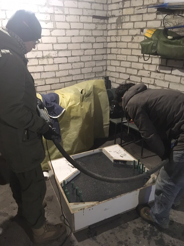 7. Маленькие закладные прогревал газовой горелкой (её недостаточно для разогрева больших, и к некоторым маленьким было не доспустимо крепление ребер жёсткости) Пропорции полимербетона: