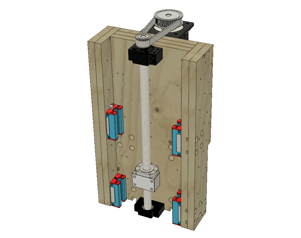 - Проблема - любые конструкции фанерных карет не могут обеспечить должную жёсткость для хода по Z в 200мм. Пробовал три разных варианта, последний был самым удачным. Но даже при нём, в самом нижнем положении Z-ки, отклонение на быстрых подачах могло быть до 1мм.