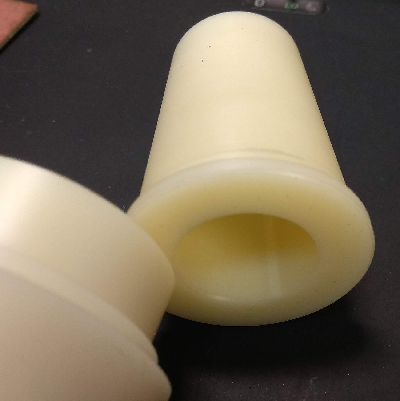 ПОМ слегка махрился, а вот капролон плавился зарраза. На абсолютно одинаковых режимах.
