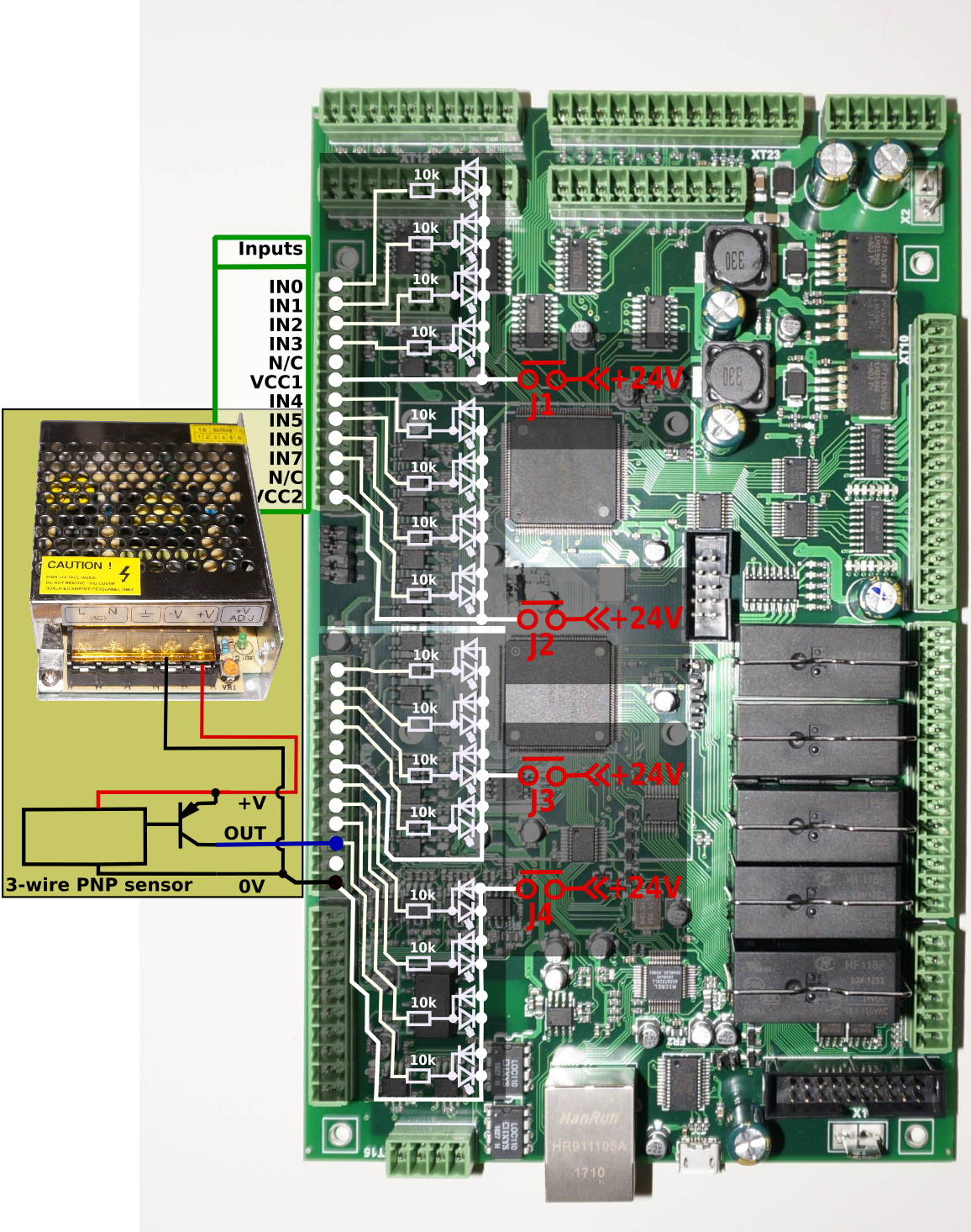 Джампера Я сымаю при питании от внешнего блока питания. Просто меня вводит в заблуждение первое фото при подключении двух разных датчиков npn и pnp. Нижнее фото будет правельное для моего варианта pnp датчиков?