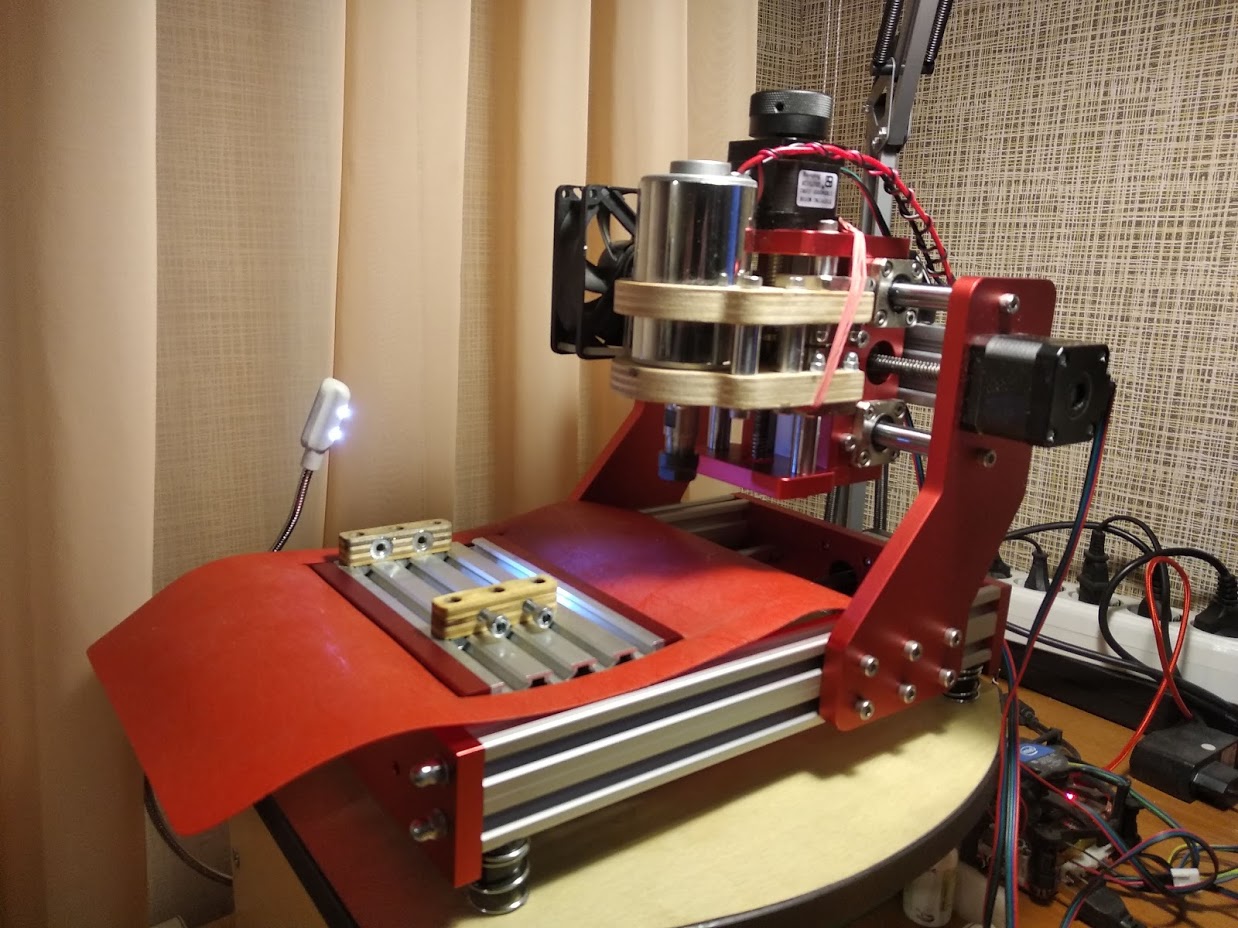 Мной произведено изменение конструкции для установки нового шпинделя, оснащение станка датчиками положения (концевиками) и увеличение рабочего поля вдвое.