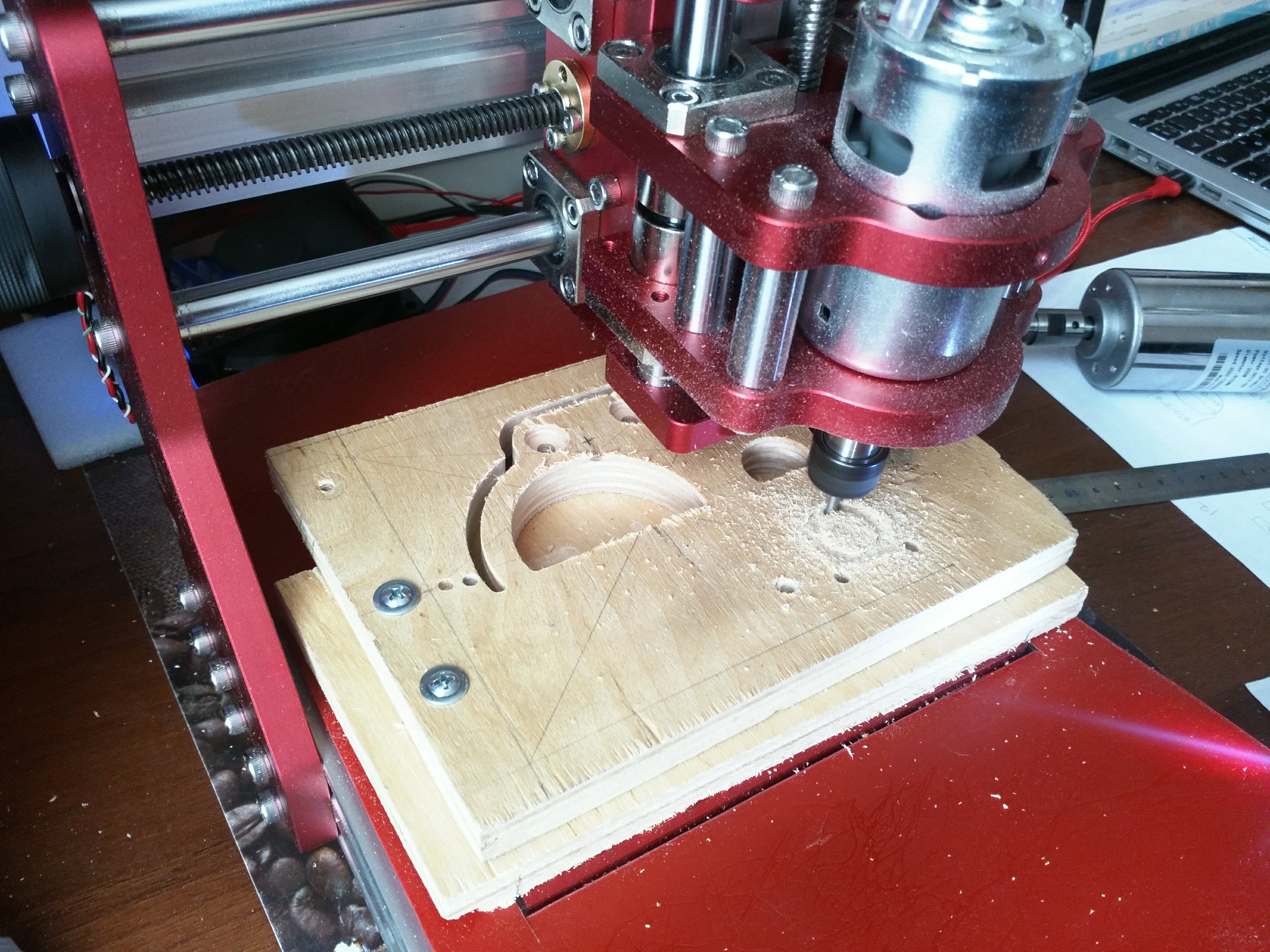 Вообще вырезать посадочное под шпиндель планирую из алюминия. На этом же станке. Как и посадочное из фанеры.