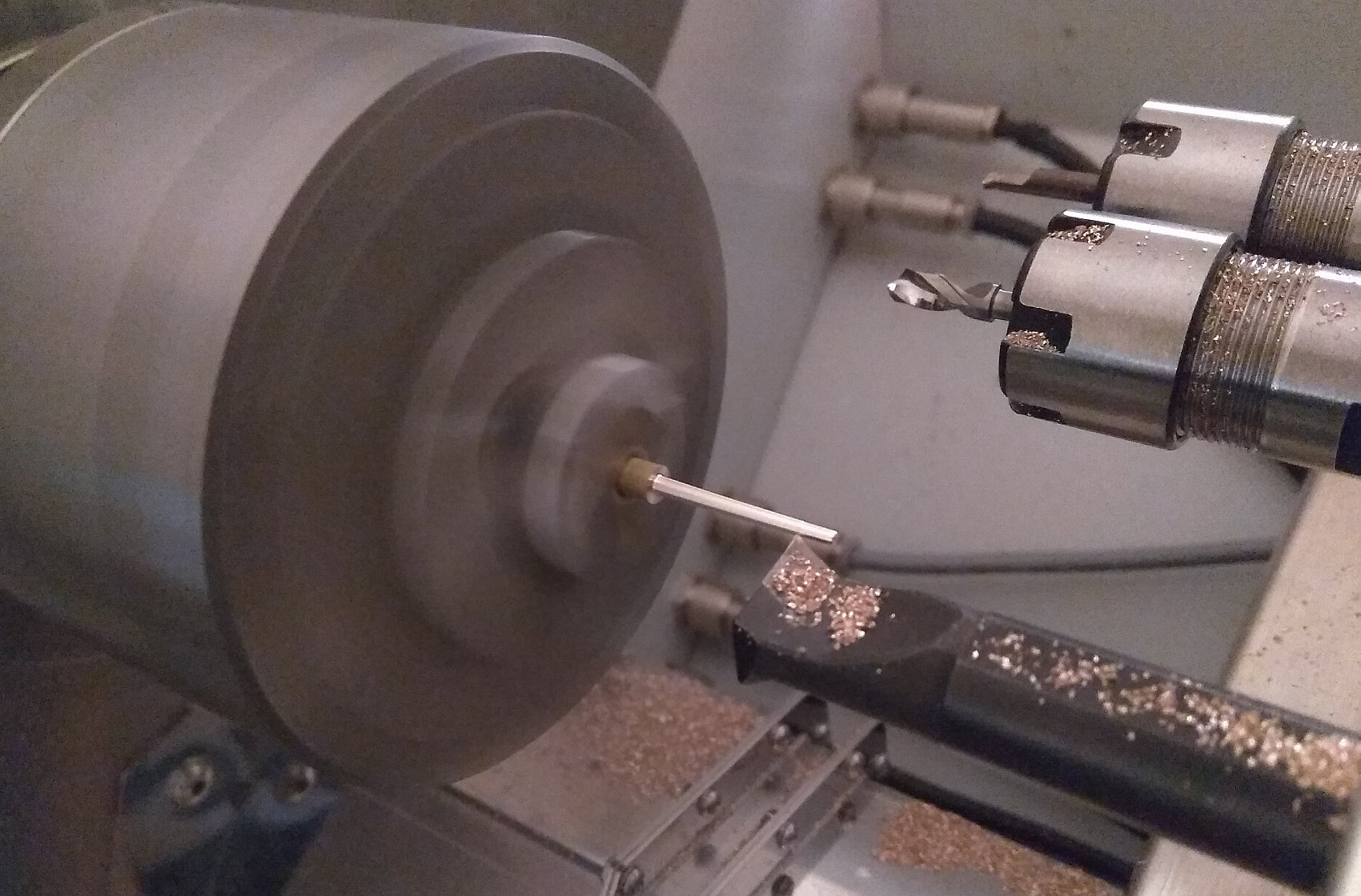 Евгений - конкретно вот эти детальки точились на 2800 оборотов. из прутка 4мм. я не знаю - насколько видно на фотках где обрабатывается деталь - специально пытался снять - обработка велась конусом. съем за проход - 0.5 на сторону. Но по меди я бы 0.25 ставил. она вязкая. Вообще кинь картинку, я скажу свое видение обработки. Длинные тонкие детали - вообще отдельная тема - тот еще геморой.