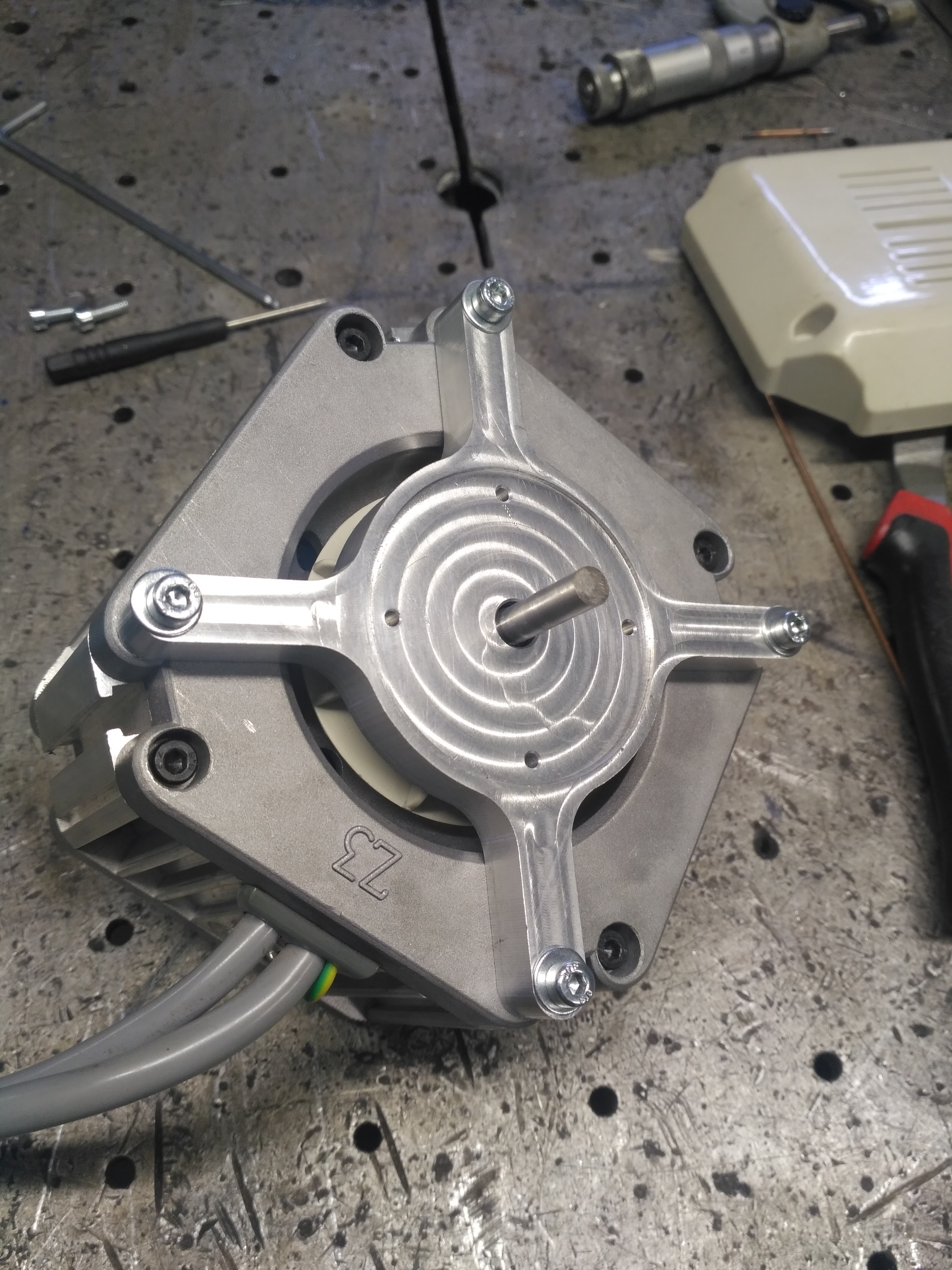 Поставил энкодер (за энкодер спасибо Алексею "Hanter"). Вал мотора просверлил, нарезал резьбу. Выточил удлинитель, вкрутил в вал на локтайт. Затем вал прошлифовал в размер прямо в своих подшипниках, чтобы не было биения. А дальше все просто.
