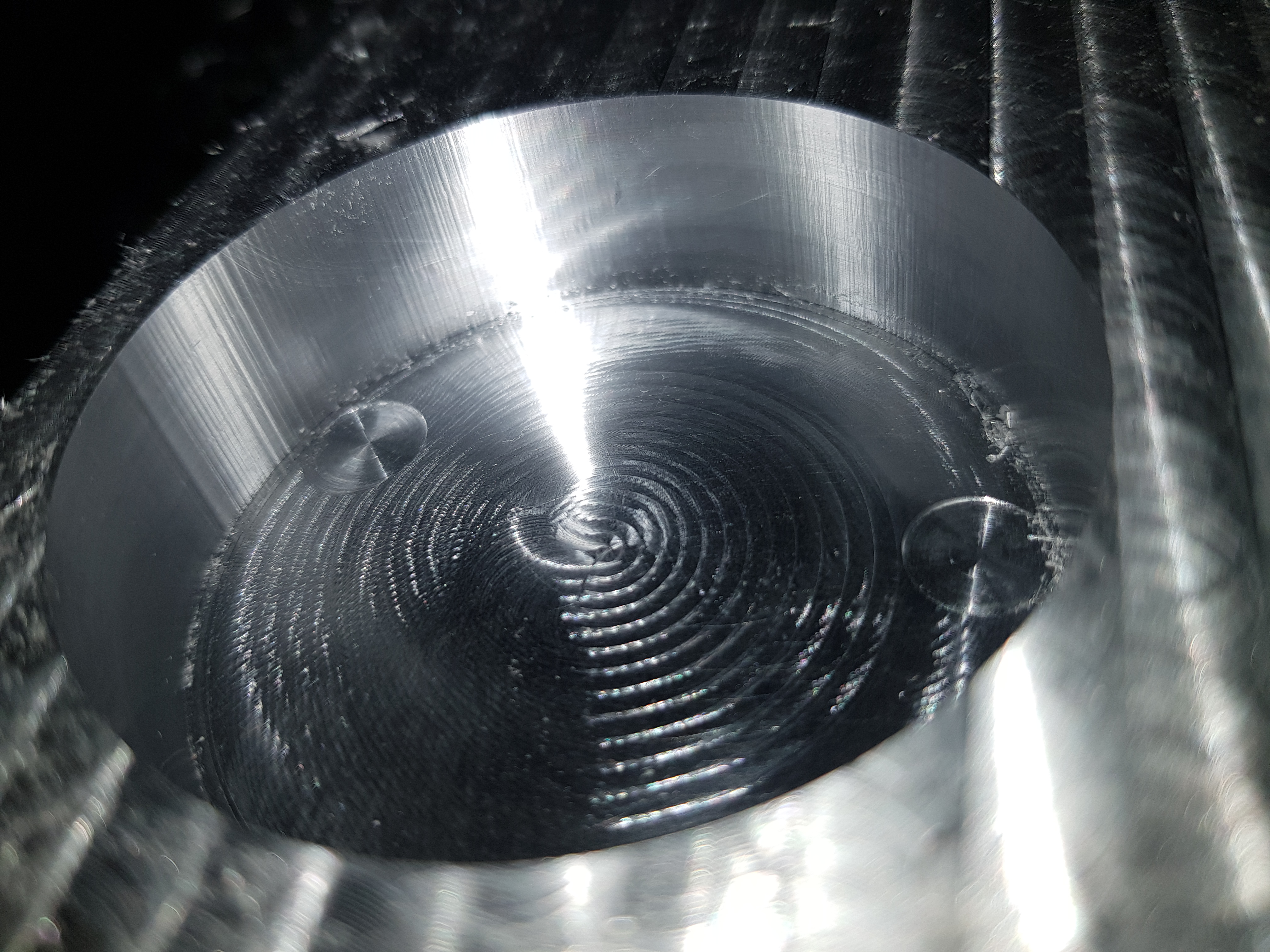 Всем добрый вечер. Сегодня резал деталь и получилось как бы маленькая шагрень на стенке отверстия. Программу делал в солиде. Интерполяцию поставил 0.001мм сраы настроены в жёсткое удержание. Куда копать не пойму.