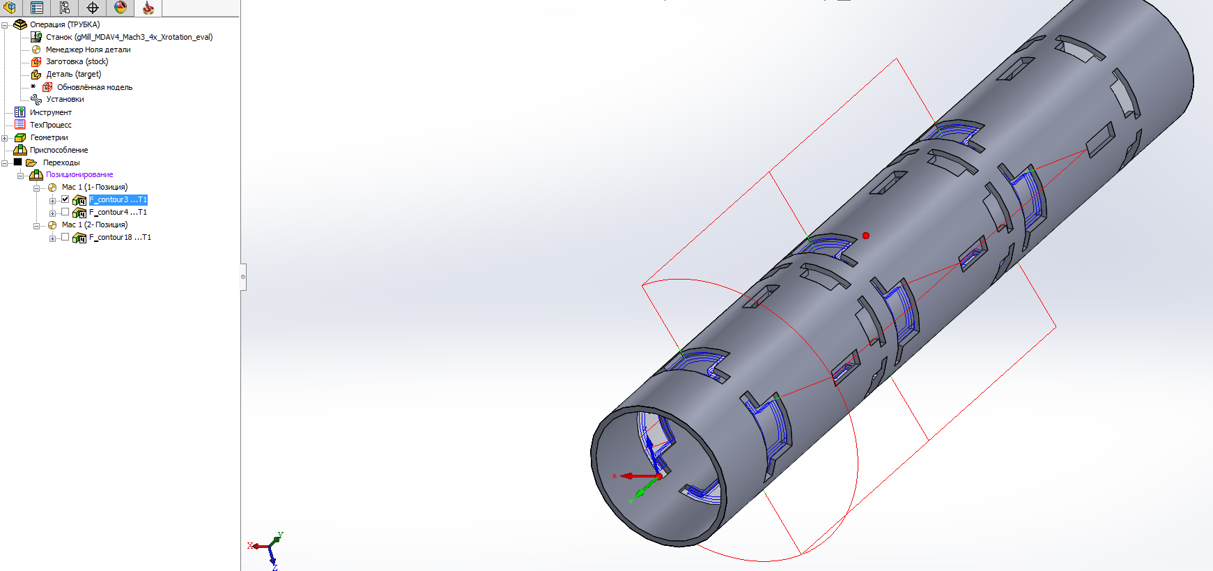 Нужно сделать вырезы в пластиковой трубе - 4 отверстия через 90 градусов. В солиде все проходит хорошо- визуализация делает так как надо. Но при генерации кода и загрузке в MAch3 имеем только 3 отверстия - 4ое отверстие почему то совпадает с 1ым. И так со всем оставшимися отверстиями. В чем может быть проблема? С Уважением.