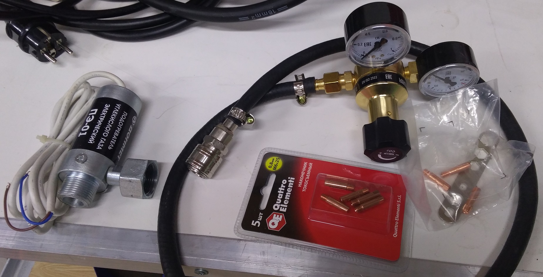 5) Провод для TIG сварки (требует дополнительно лишь небольшой комплект оснастки для крепления электрода.) Позволяет выполнять аргонно-дуговую сварку.