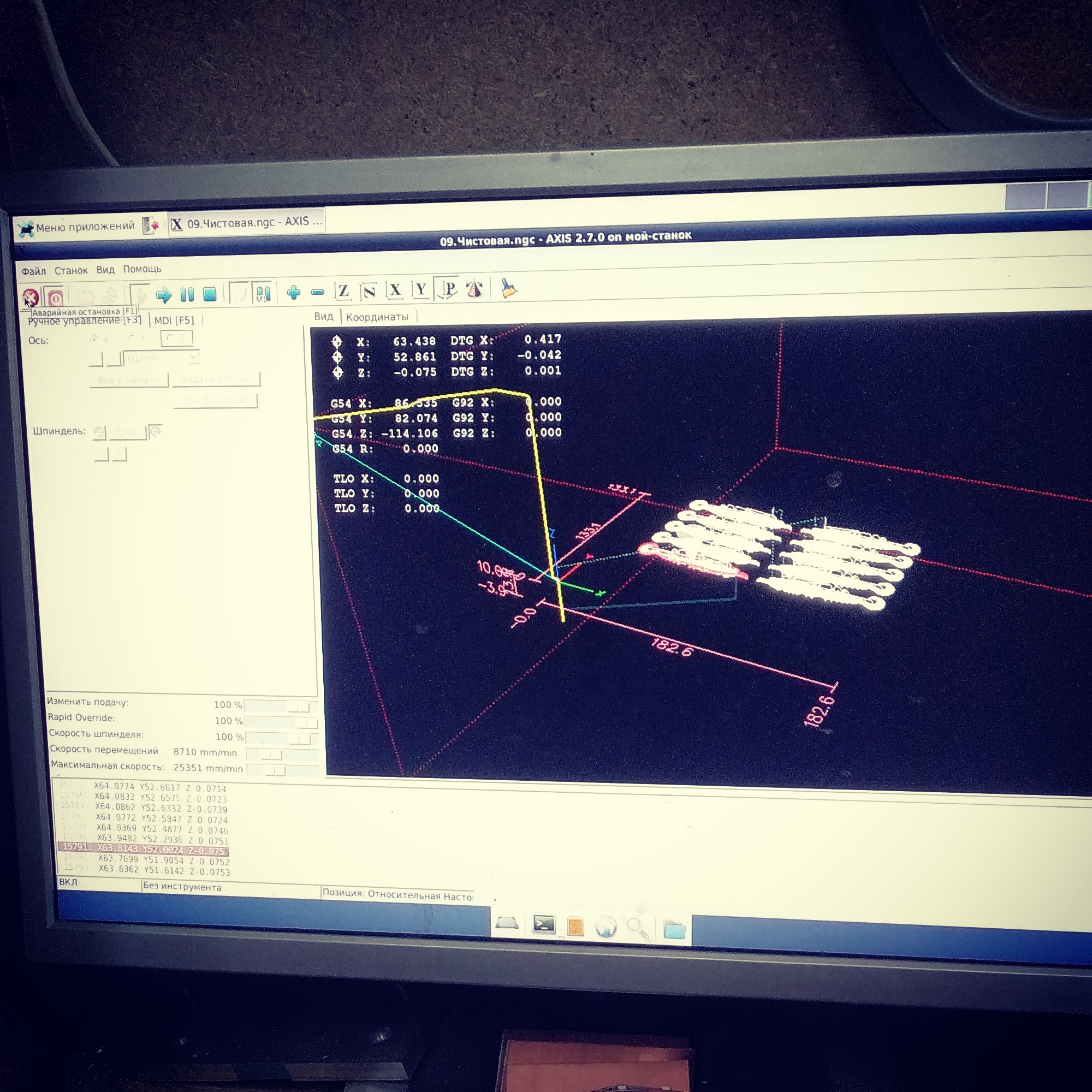 По недочетам - не особо нравится как станок дуги отрабатывает, как то резко, топорно, с дерганьем. Может кажется, может я чего то не так с ускорениями намудрил. но факт остается фактом. Если сравнивать с мач3, то ПМ намного лучше их отрабатывает. В мач3 интересный прикол с дугами, попутно дуги отрабатывает с дикими тормозами, встречно - нормально, более менее плавно. Либо наоборот, не помню уже. Но направление хода имеет значение в мач3