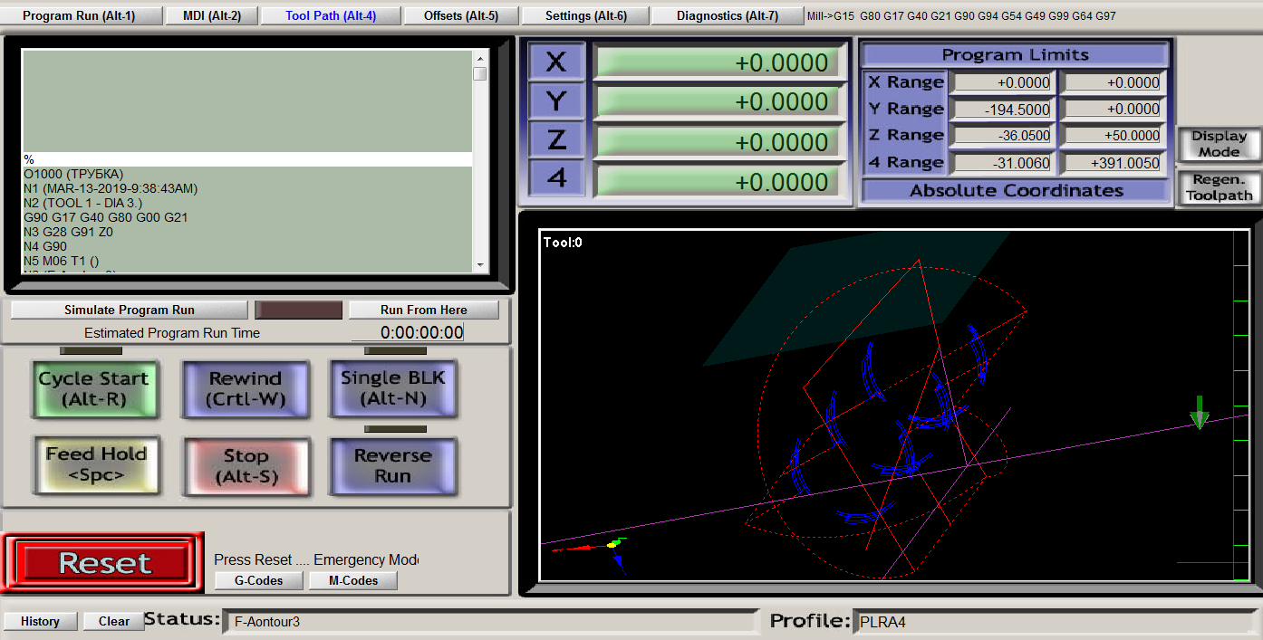 Нужно сделать вырезы в пластиковой трубе - 4 отверстия через 90 градусов. В солиде все проходит хорошо- визуализация делает так как надо. Но при генерации кода и загрузке в MAch3 имеем только 3 отверстия - 4ое отверстие почему то совпадает с 1ым. И так со всем оставшимися отверстиями. В чем может быть проблема? С Уважением.