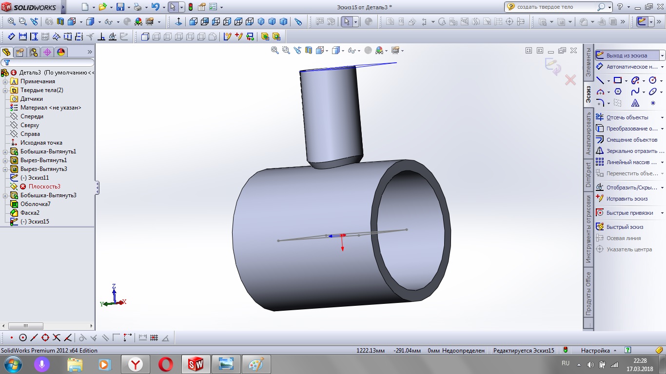Спасибо большое)респект вамniksooon писал(а):я вроде по русски написал что строить патрубок надо поверхностью (нулевой толщины) а затем придать ей толщину............ тогда торец не будет повторять форму основной трубы.....