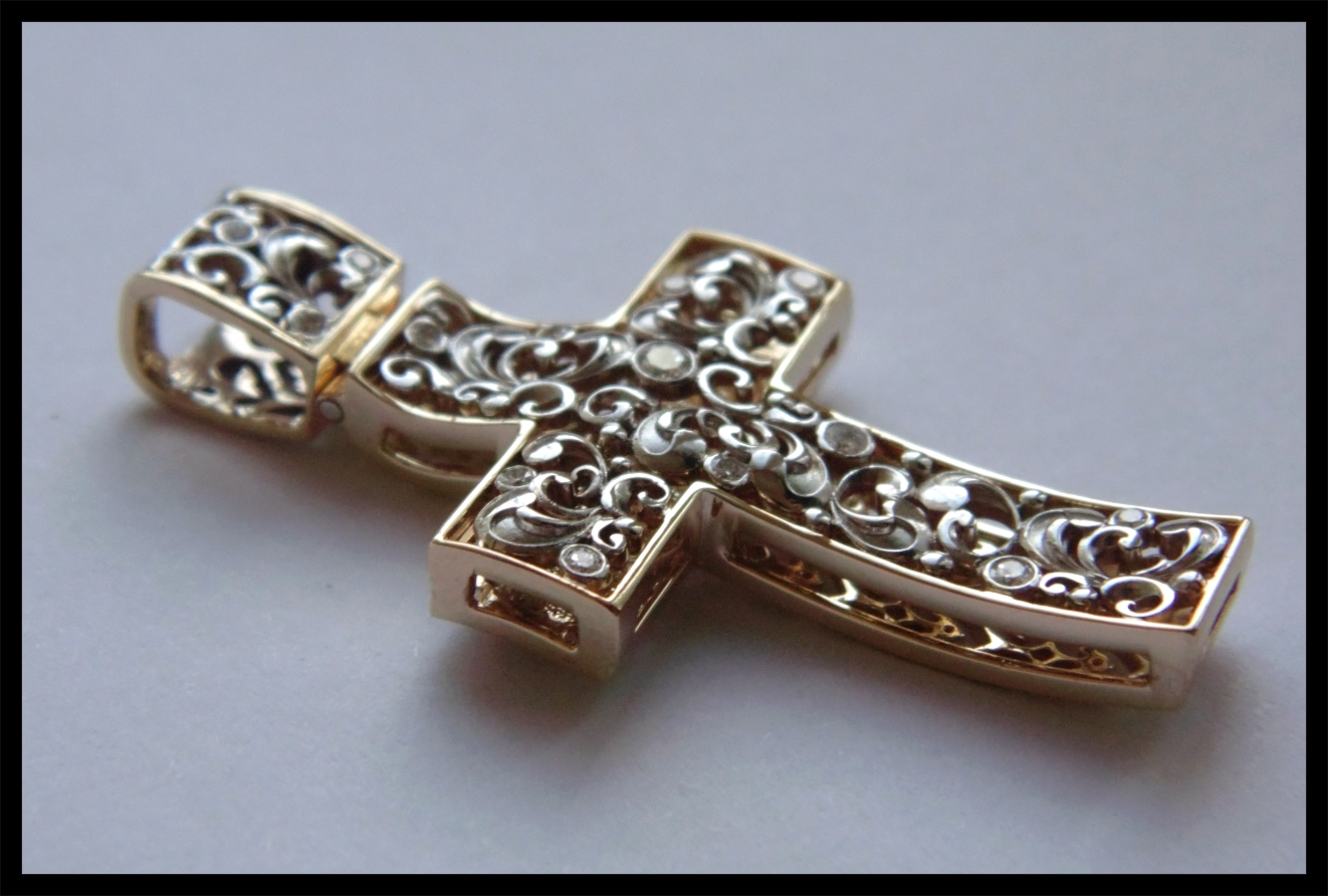 The cross. White and yellow gold. Height 4 cm