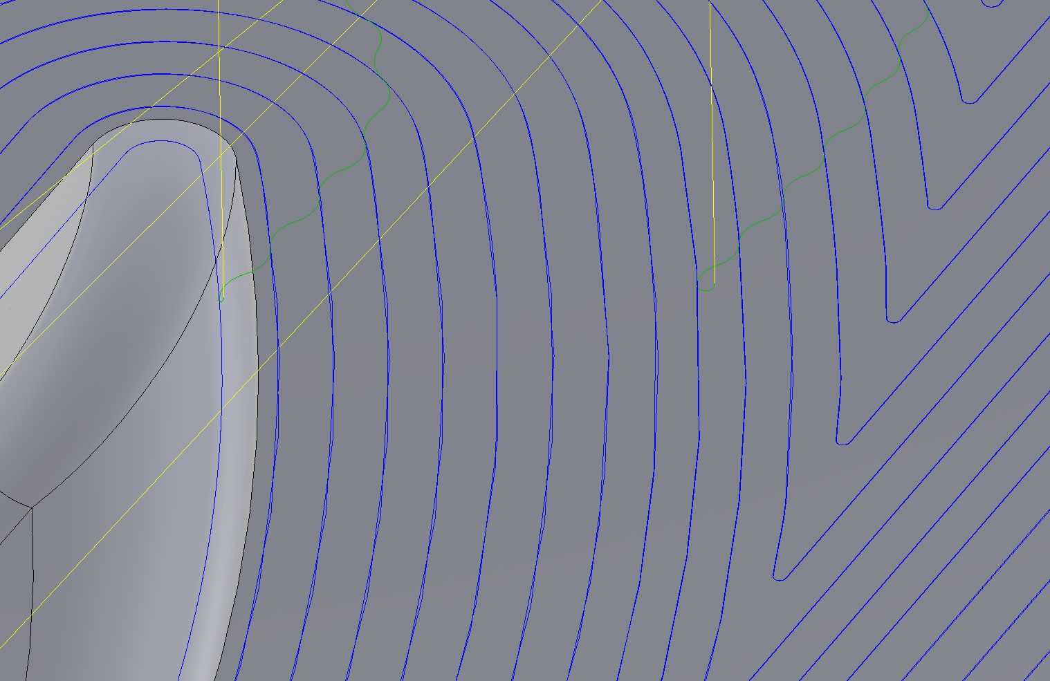 просто в первом ответе на эскиз с углом не обратил внимание. а так спасибо. примерчик скинул не совсем как на самом деле - там более сложный профиль. и конструктора ни один из вариантов обработки программно не устраивал. только дописыванием кода вручную решали проблему эту.