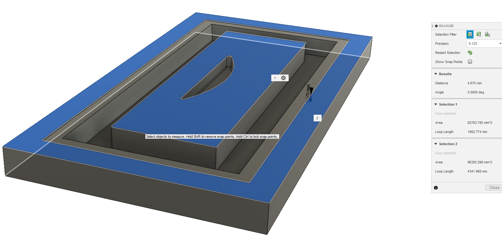 Кажись нашёл косяк в модели, попробуй проверить угол наклона той грани, которая дважды обходится. Кажется она не параллельна граням на периметре.