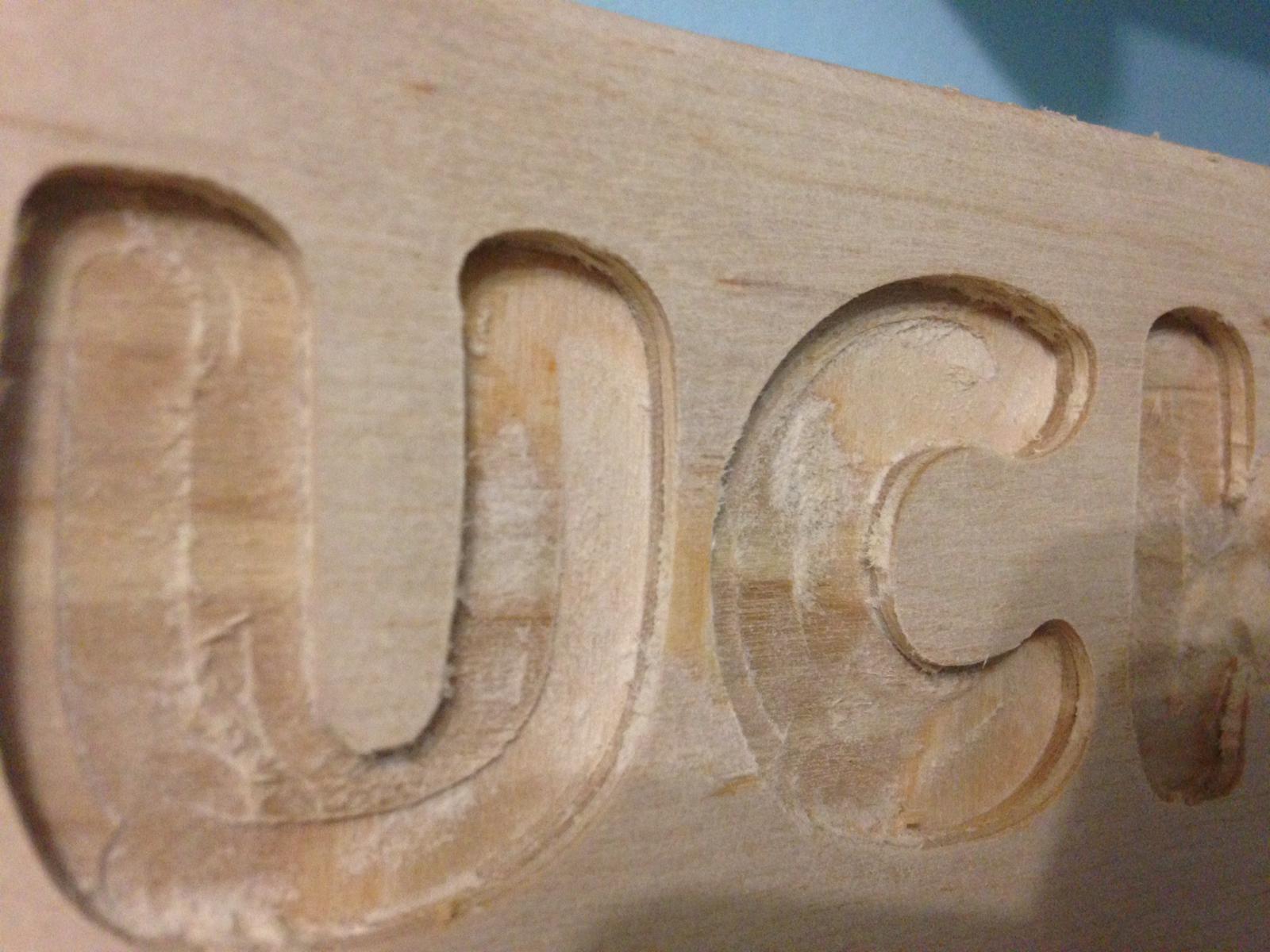 При работе возникает вот такая "ступенька" ±0.5 мм вслед за фрезой. Такая картина всегда когда делаю что-то типа паза или вот такую выборку под надпись.