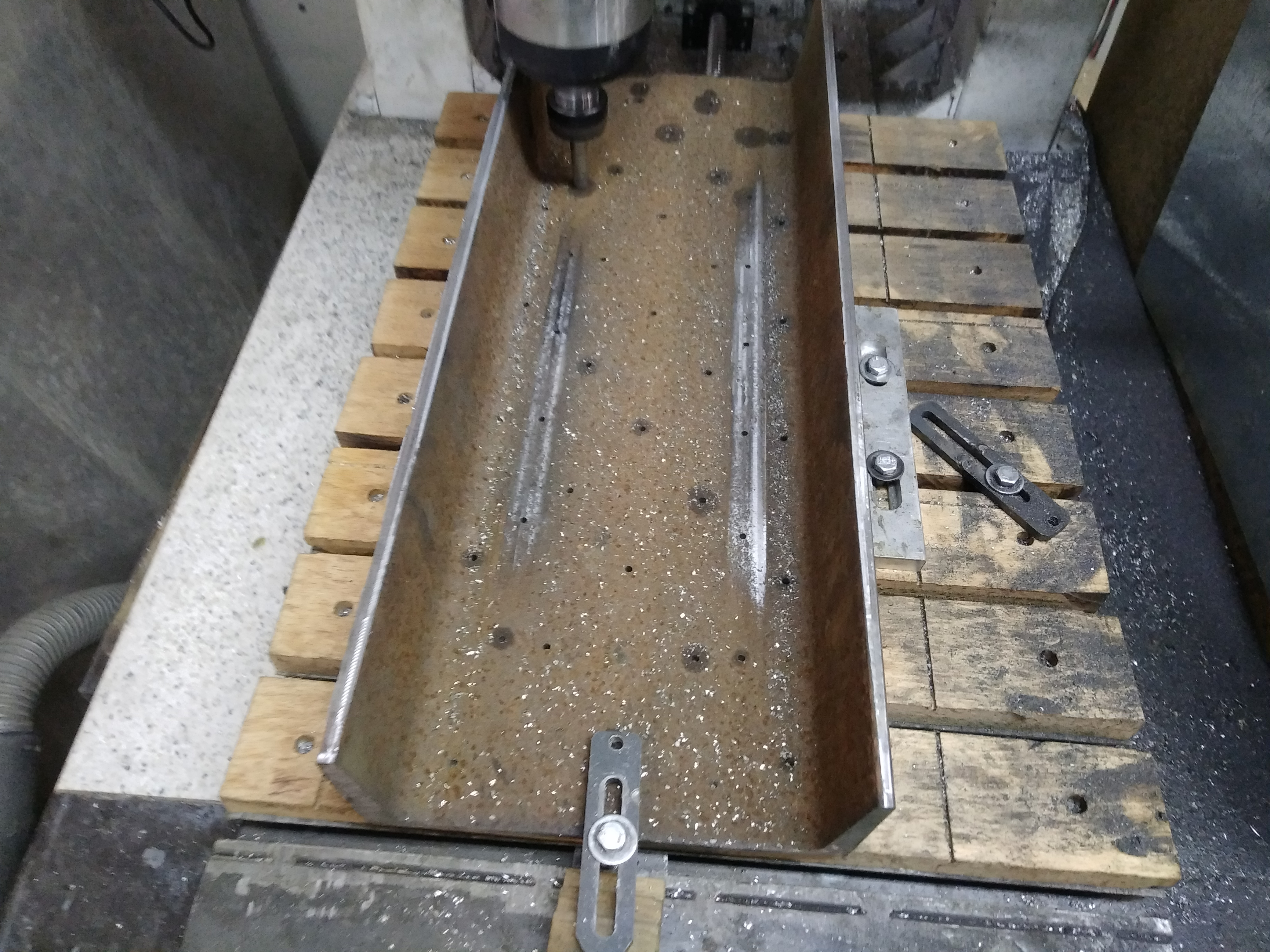 Сначала сварил из 140 уголка (толщина стенки 10мм) основание. И отдал на фрезеровку.