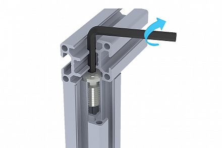 Я имел в виду способ как на картинке, но только соединение не в месте стыка профилей, а один из профилей просверлен насквозь, и уже сквозь него идет винт, который соединяет два профиля как на картинке.
