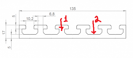 Там не рельсы а валы на опорах (SBR16) они становятся точно на профиль. Они (SBR16) будут проходить через всю конструкцию (включая профиль 1 и противоположный ему) по внутренним пазам профиля 120Х60 (профиль 2 и противоположный). То есть концы будут на коротких профилях (1 и противоположном) а основная часть будет лежать на 120х60 (внутренняя половина). На внешней половине 120х60 будут стоять стойки портала.Samodelkin 88 писал(а):Да.