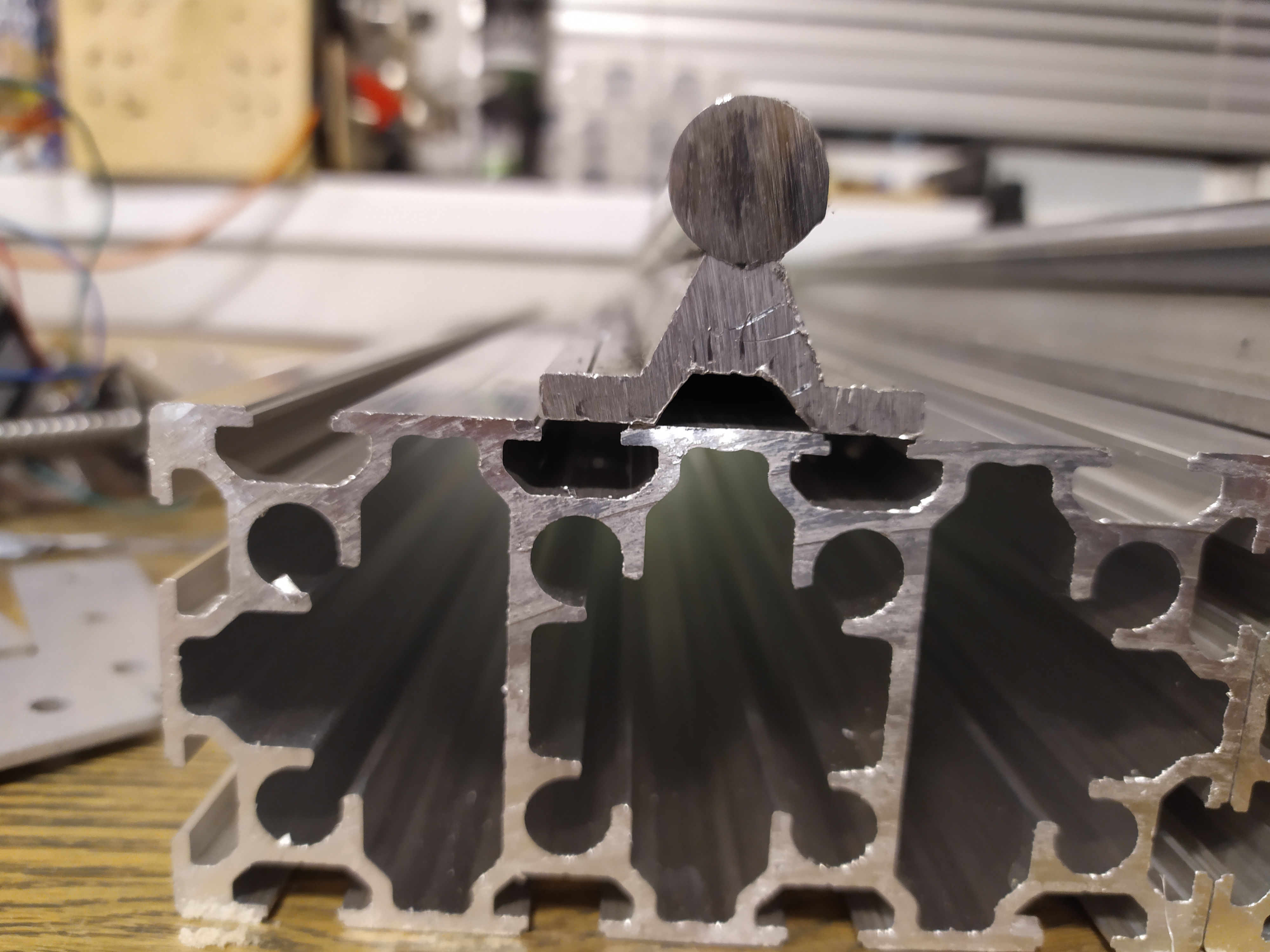 Ну а что, сделал толстый слой, немного сверху надавил торцом и и затем в морозильник. После морозильника, пластилин твердый будет, и можно спокойно засыпать смесь. А отверстия в профиле (видите на фото, вдоль отверстия идет разрез, в который смесь набьется) заклею сантиметров на пять вдоль профиля изнутри просто скотчем, вставив всю ту же пробку из пластилина где то на глубине 5 см. Когда буду нарезать резьбу, скточ не помешавет нарезке.