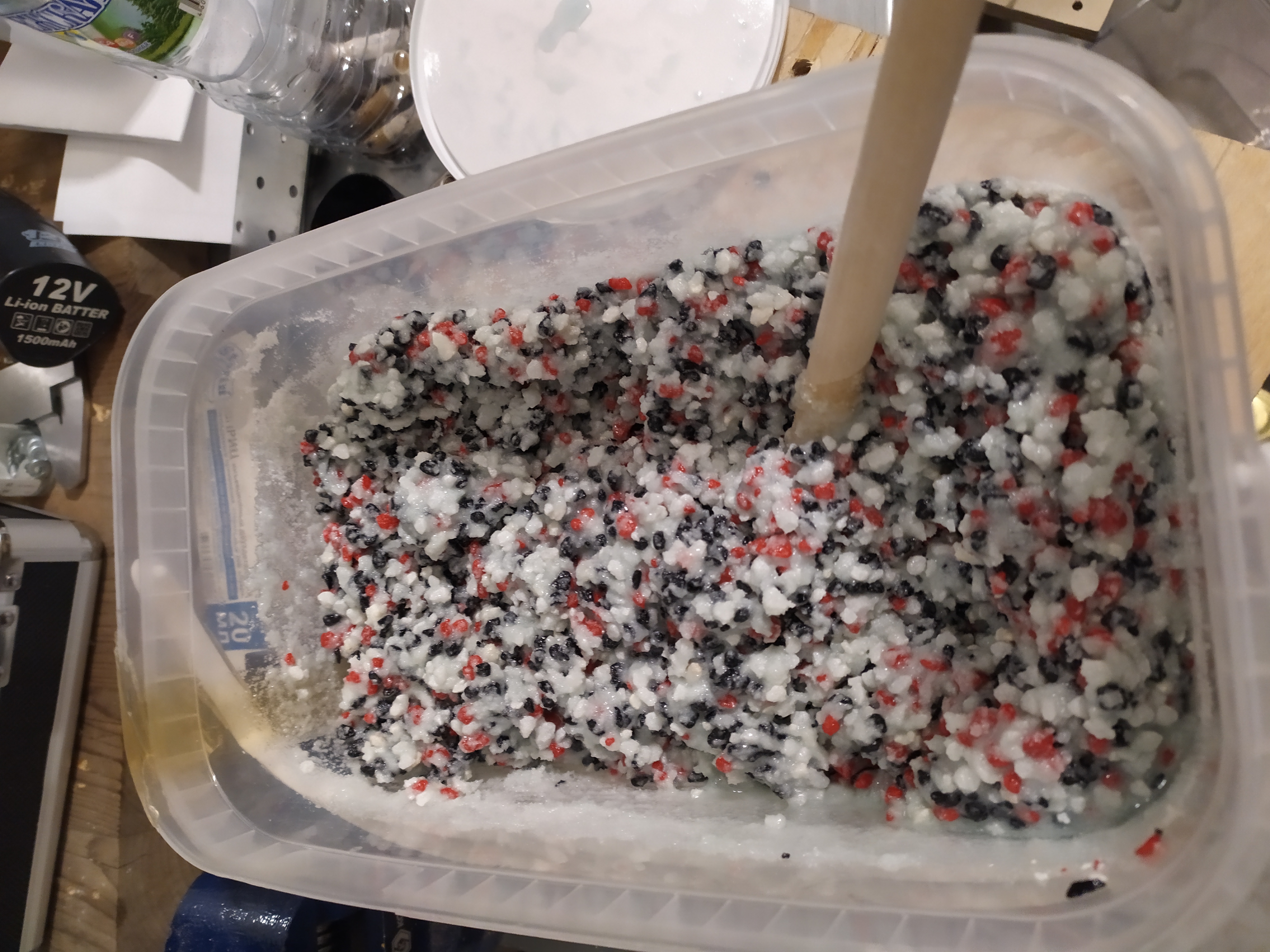 Сегодня рулон наждачки 180-ой прибудет. Хочу попробовать убрать излишки Там, на самом деле, фактически осталось убрать небольшие наплывы смолы с песком, а все выступы камня я вырубил даже не под ноль, а в минус. Может и прокатит, посмотрим.