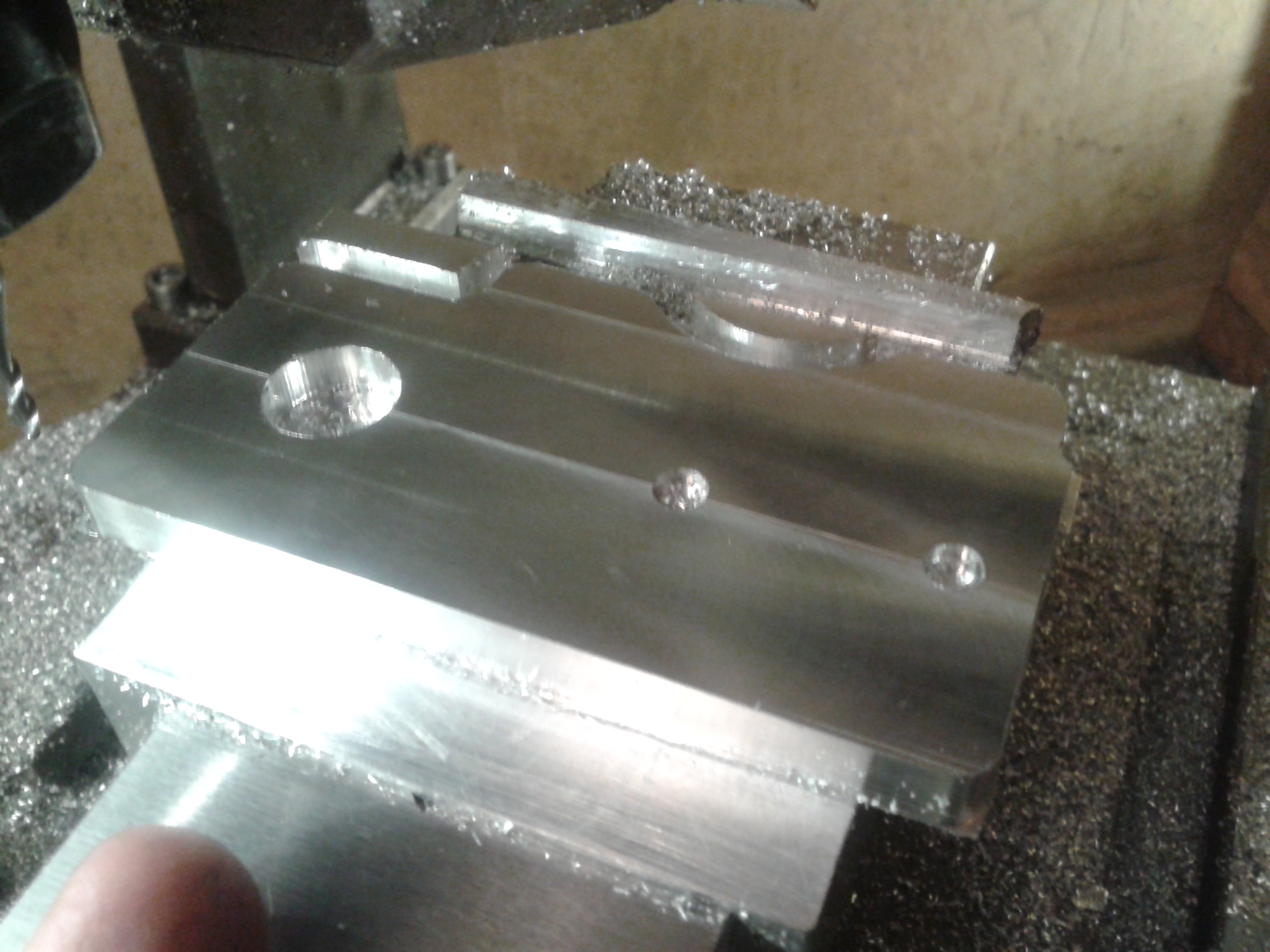 На ночь глядя, для тех ,кому не спится :) Пилил советским твердосплавом ф3,старенькая уже фреза и несколько раз ручками правил. Материал - литье нашего спортсмена (ал. и куча всего))