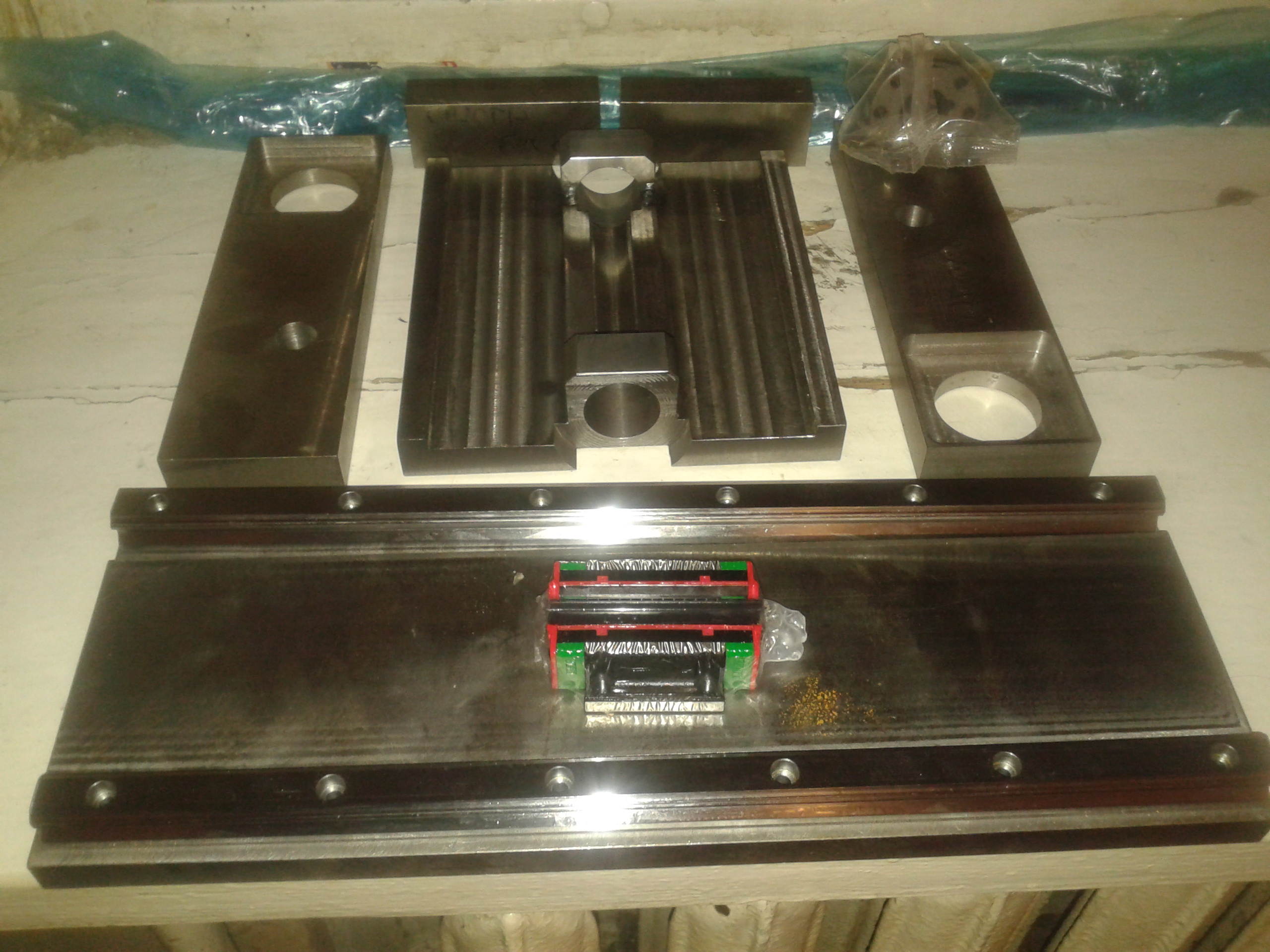 В общем прикрутил рельсы ,нужно еще прижимки сделать . Блоки пришли высотой 24,а думал что стандарт это 28..... :hehehe: ,когда есть запас и фрезерный станок ,то это нисколечки не смущает :D