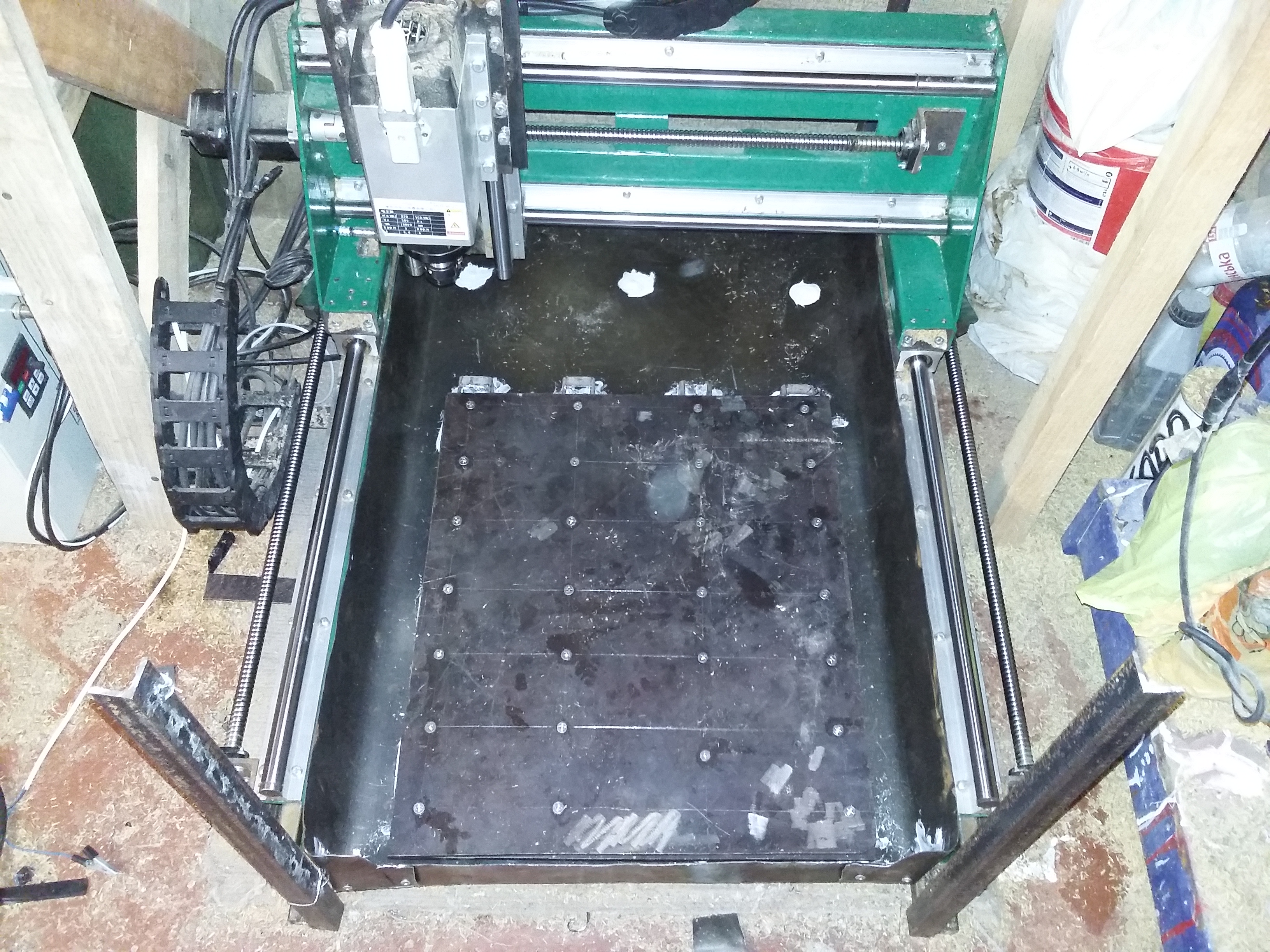 Продолжаю улучшать станок. Добавил поддон и сделал стальной рабочий стол. Так же подготовил опоры под гофрозащиту.