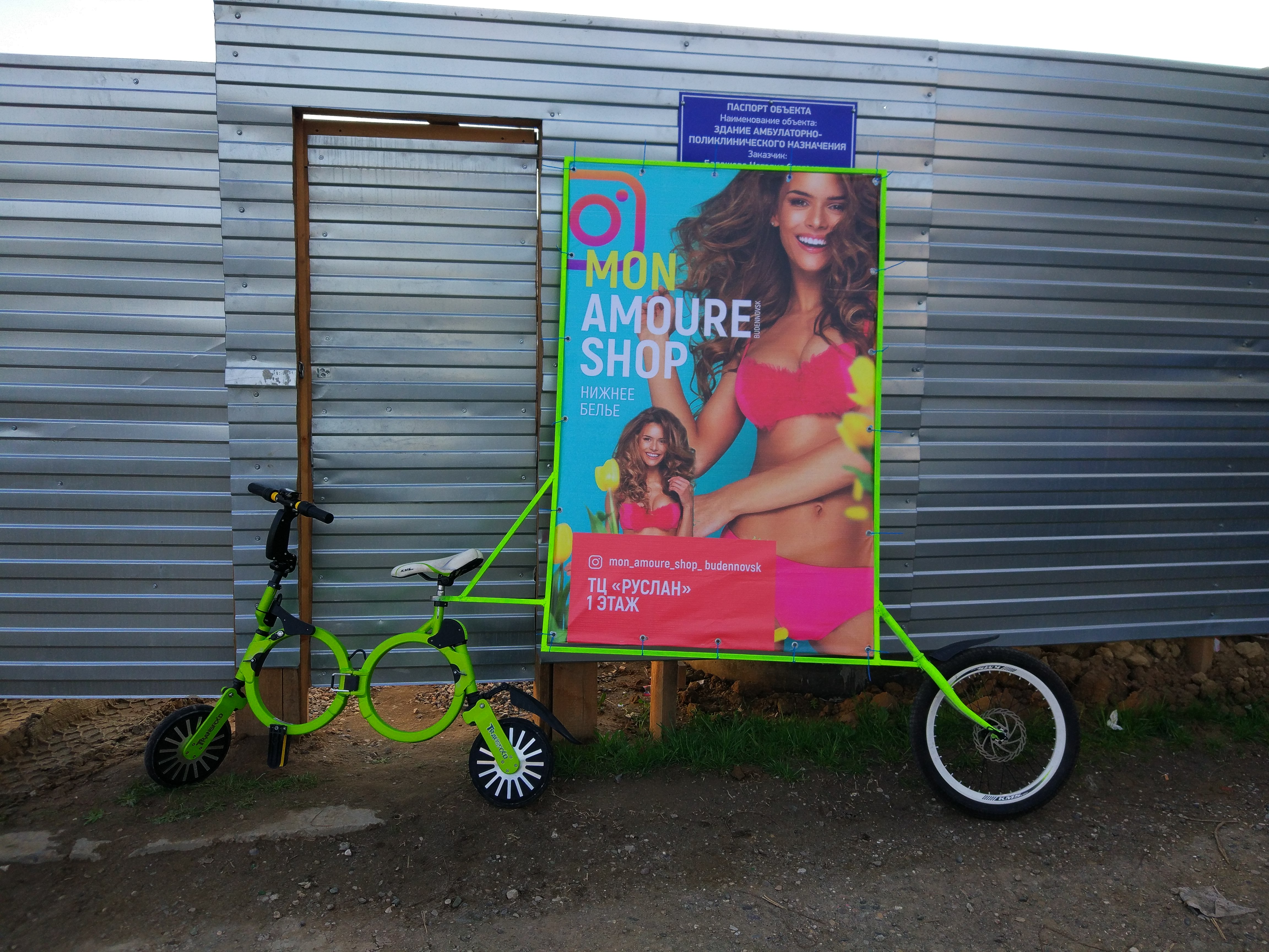антиПарусность/жесткость конструкции можно усилить ТОЛЬКО разносом сил с одного заднего колеса на два. И чем шире, тем устойчивей/жестче. Либо рамку плаката переводить из вертикального положения в горизонтальное и рекламировать уже "лежащих девушек" :hehehe:
