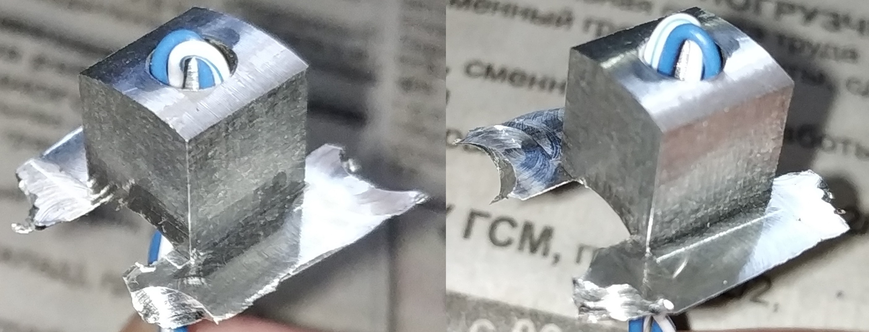 Ещё один кубик вырезал. Подача 200 мм в минуту, заглубление 0,3 мм.