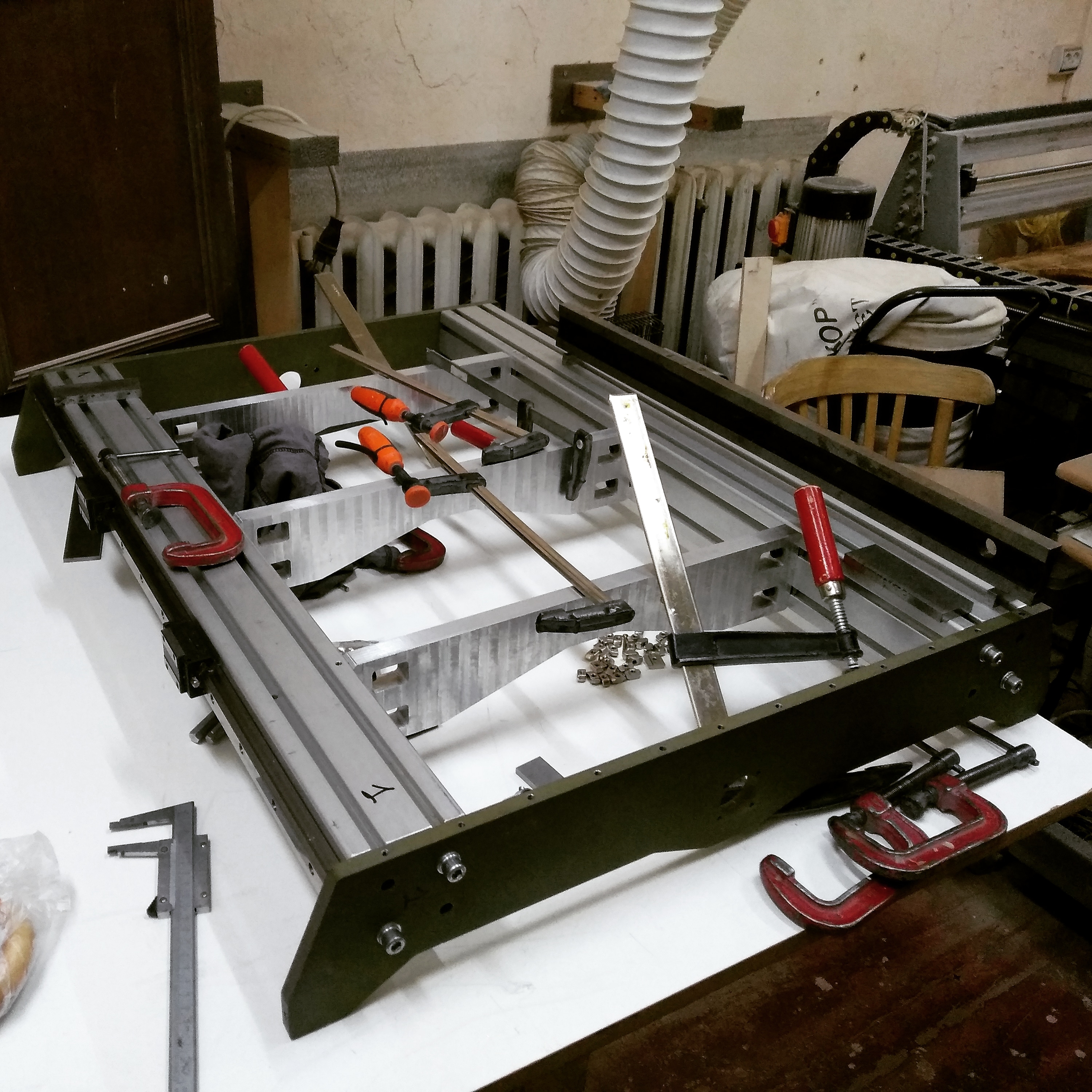 Заменил перемычки на станине, как можно заметить. Выставил рельсы по линейке. Сейчас порталом занимаюсь. Был так