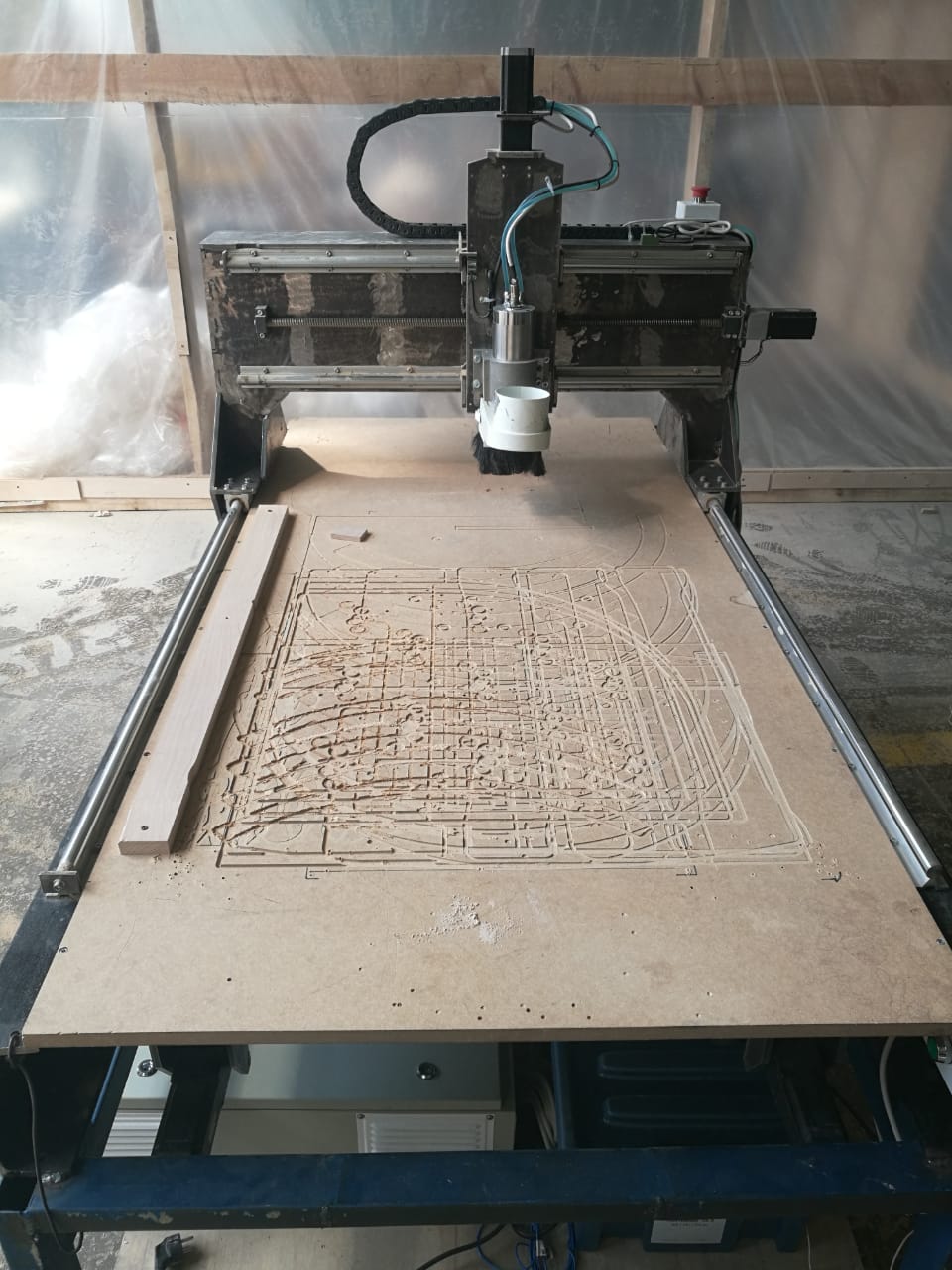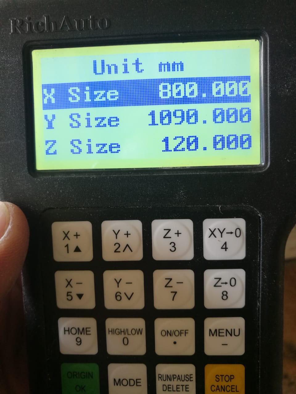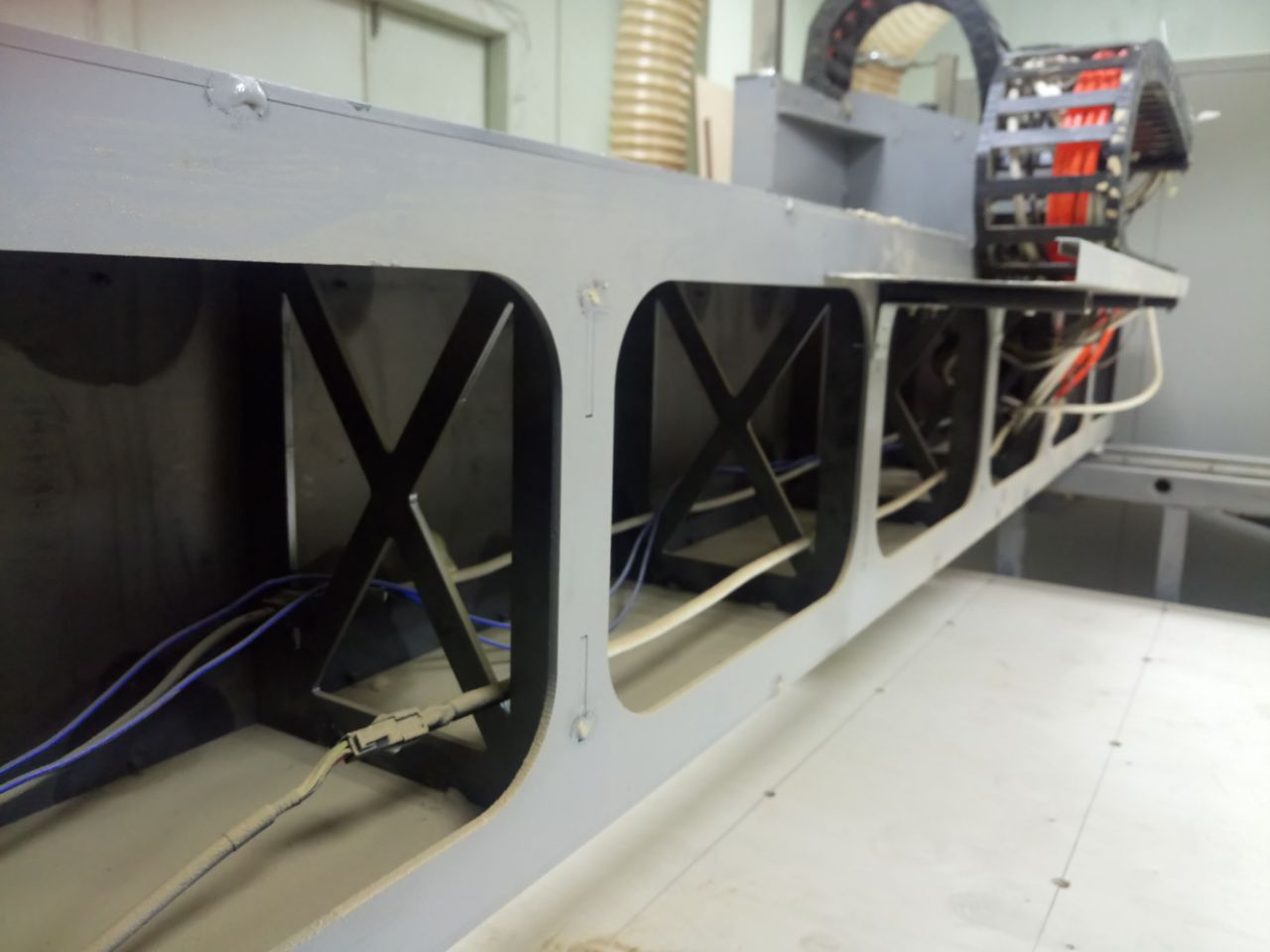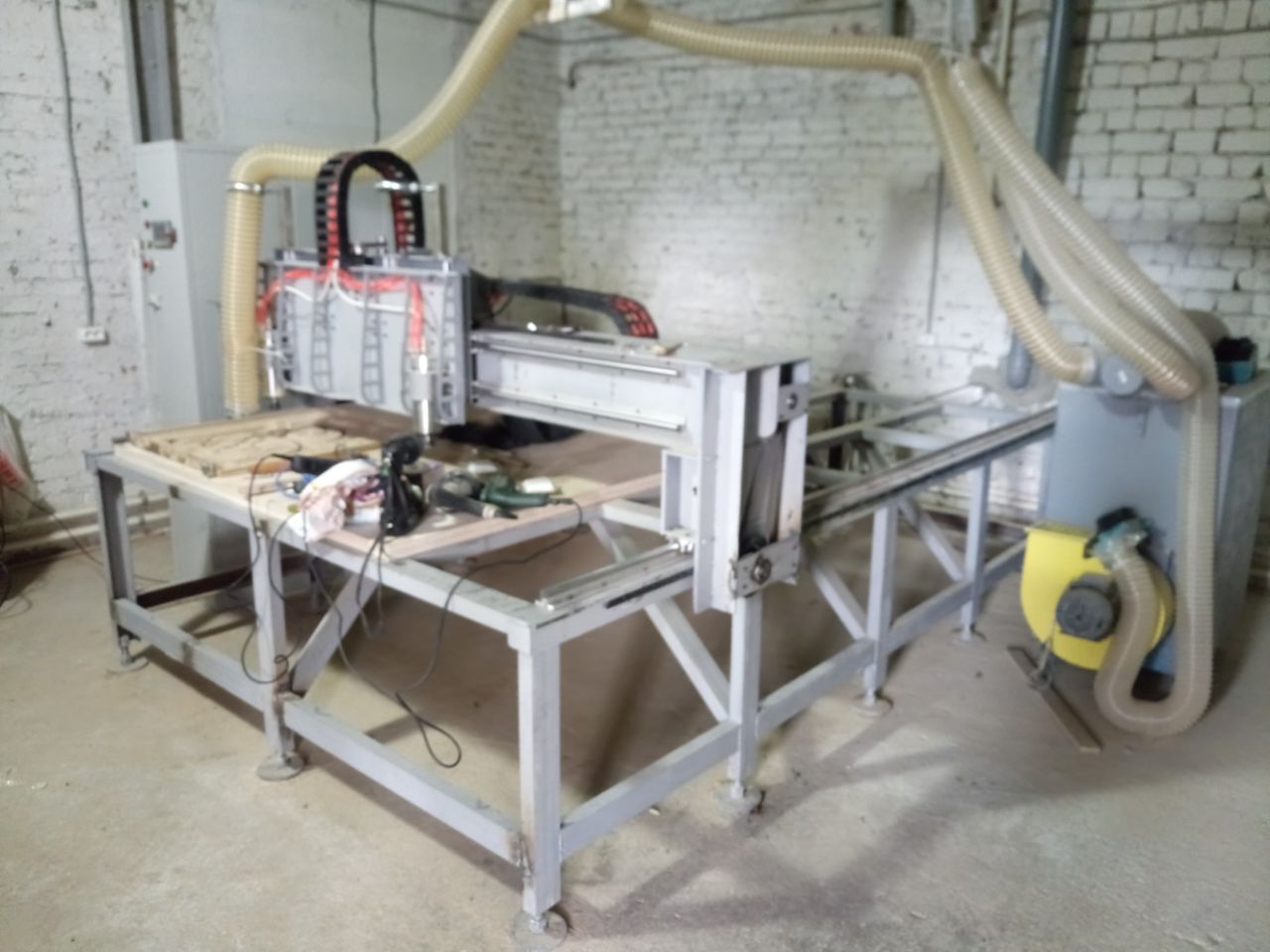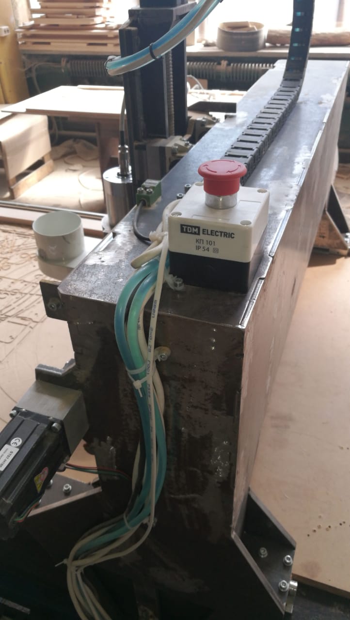 Станок с чпу. Поле 800х1090х120 мм. Портал и рама жёсткие. Можно работать на больших подачах и заглублениях. Пульт-контроллер DSP A11 Rich Auto (не RZNC 0501). Шпиндель 2,2 кВт с водяным охлаждением. Направляющие на осях X и Y цилиндрические рельсы. На оси Z профильные рельсы. На всех осях ШВП. Диаметр 16 мм. Шаг 5 мм. На всех осях шаговые двигатели NEMA 23 (57мм), высотой 100 мм. Установлены индуктивные датчики домашнего положения. Выведена отдельная кнопка для запуска программы (та что на фото, от домофона) для прогона больших партий однотипных деталей.
