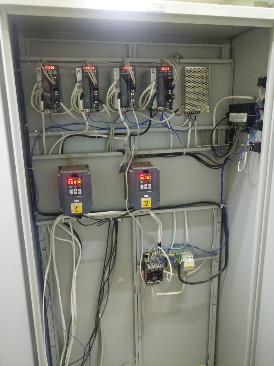 Контроллер четырёхосевой, серводвигатель для четвёртой оси подключен, фото щита старое, сейчас стоит пятый серводрайвер.