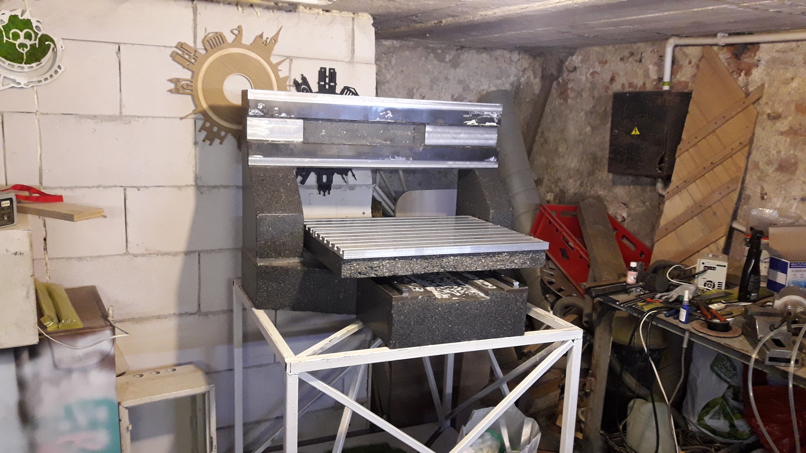 Наконец привезли станину с завода, Вот собираю. Сегодня обломал метчик М10 старой советской закалки. Попытки выкрутить приварив обломок провалились, потом начал выстукивать по кругу в обратном направлении. Только пообломал последние торчащие куски. Потом попытался взять всё это перфоратором)) сверло перфа оказалось как будто свинцовое, против метчика, победитовый наконечник оторвало на раз. В итоге на один из 12 болтов в портале пришлось забить) Остальные отверстия нарезал дешманским - 30р. Просто соблюдая технологию 1/8 - 1/6 оборота нарезки, пол оборота назад. + у меня стали там 10мм осталось после фрезеровки в некоторых местах и я не хотел свёрла по стали тупить, в итоге сверлил на сквозь. Сначала 6м пока дрель на выходе из метала не начнёт туго идти, все отверстия. Потом 8.5 для резьбы, по очереди пробивая основной слой и не касаясь полимербетона. Потом ещё раз с заглублением в него, пока песок не пойдёт. И после этого сверлом по бетону 8м делал приямок, чтобы метчику дорога была и полезной длинны резьбы было больше. Только после этого резал примерно в таком же порядке разок подтачивал метчик.
