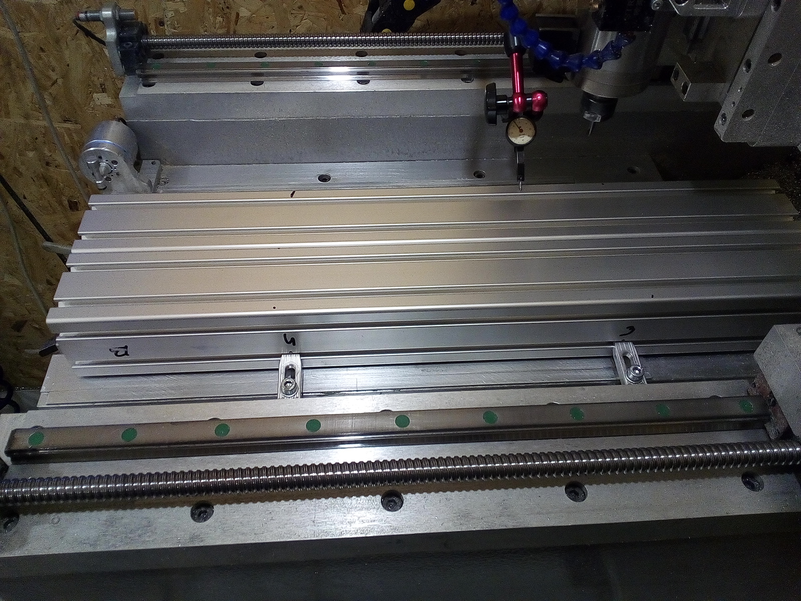 скрутил два профиля, положил на плиту, потыкал щупами. Результат - почти полторы десятки перепад, для станка по деревяшкам было бы терпимо, но для станочка по цветнине уже печально.