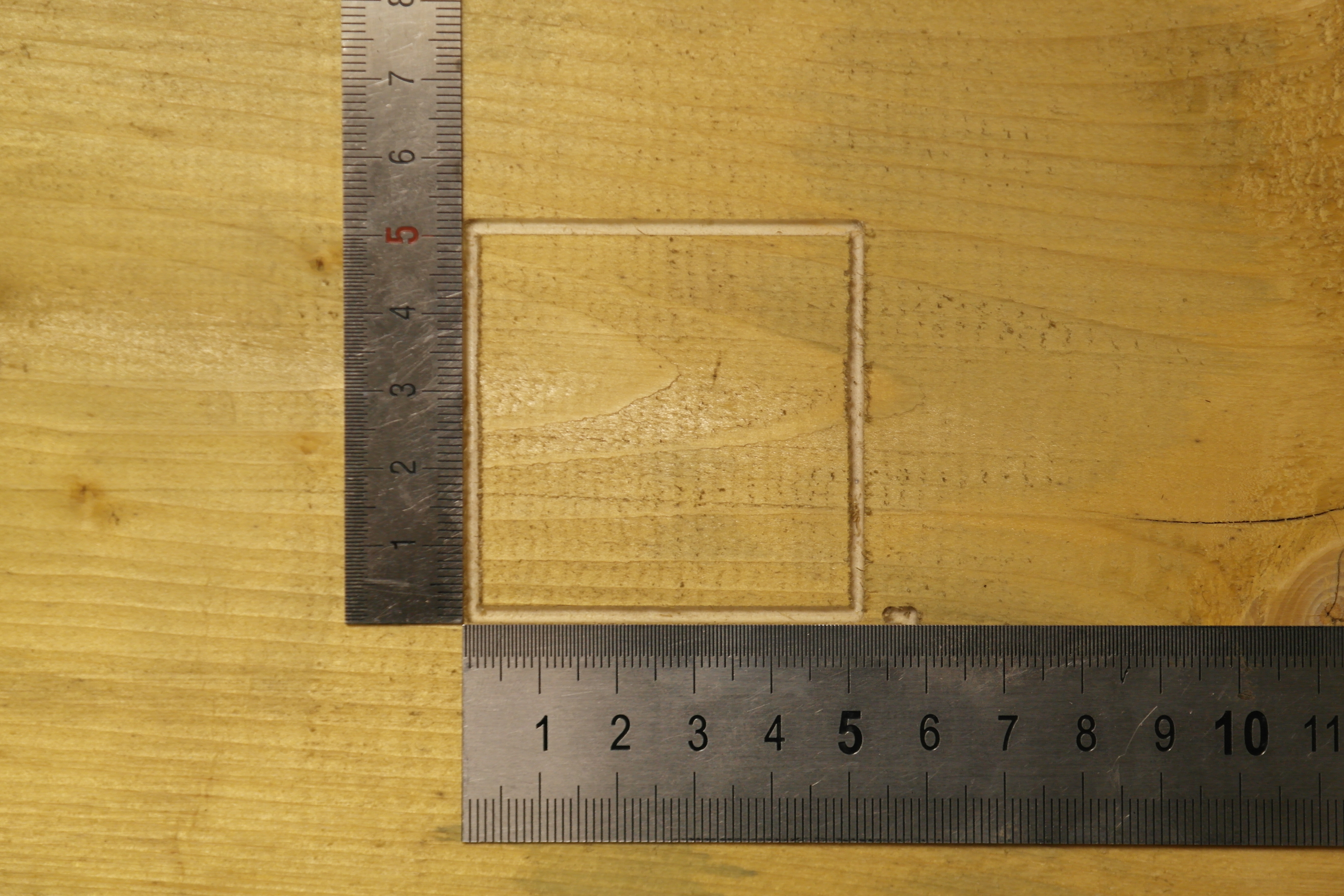 Час ночи, а я не смог удержатся что бы не испытать станок. Первый запуск моего станка прошел успешно. Конечно еще не все доделано, но когда есть результат и пущена первая стружка это уже радует. Делюсь своим квадратом по быстрому сделанным в G коде