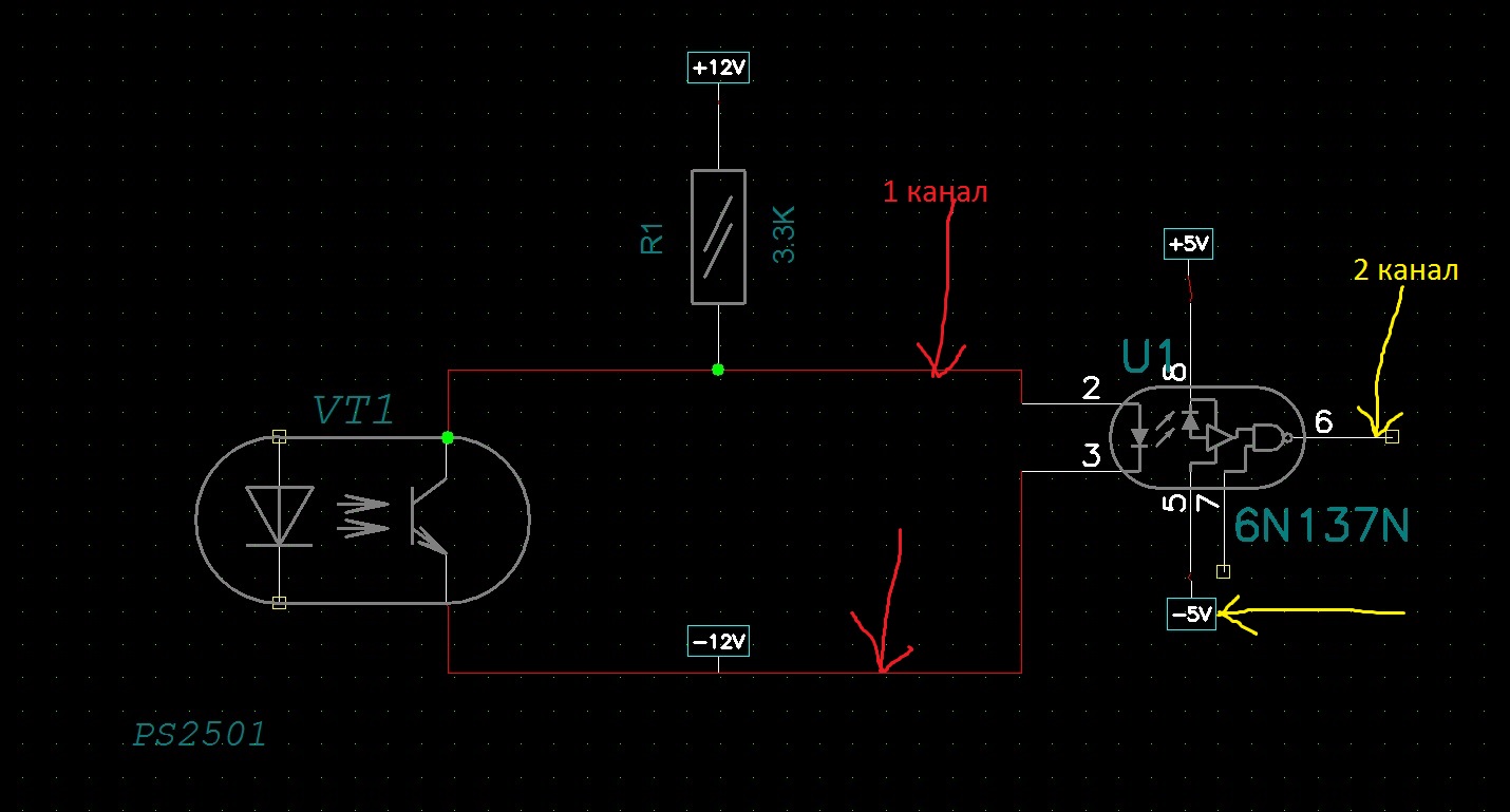 схему всего что делаете изобразите, и как снимаете сигнал тоже обрисуйте схематическиMorze писал(а):Желтый луч - нагрузил цифровой оптопарой 6N137.