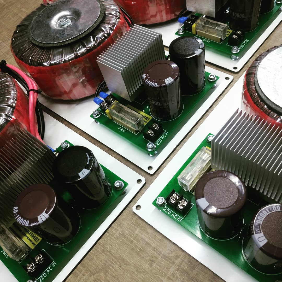 Если требуется готовый линейный БП, то к цене +2000руб. Сюда входит плата с диодным мостом до 50А, конденсаторы общей ёмкостью 20000мкф, защита от КЗ, силовые дорожки дополнительно лудятся до сечения ~4кв.мм. Каждый БП представлен в открытом варианте с размещением всех компонентов на индивидуальной монтажной площадке. Если нужен особенный конструктив - обсуждаемо. Использую только качественные комплектующие с обязательным входящим контролем.