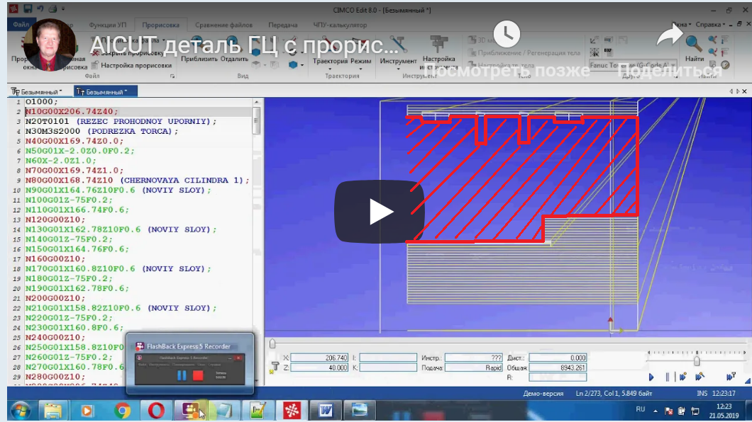 Кибер-технолог автоматом готовит ТП и УП на деталь гидроцилиндра с прорисовкой обработки в CIMCO