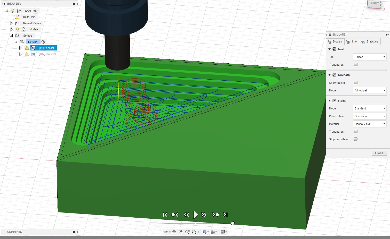 Если что, остаток после любой симуляции можно сохранить как стл, и использовать его далее как сток для последующих сетапов - например когда делается на разных станках или установках поочерёдно...