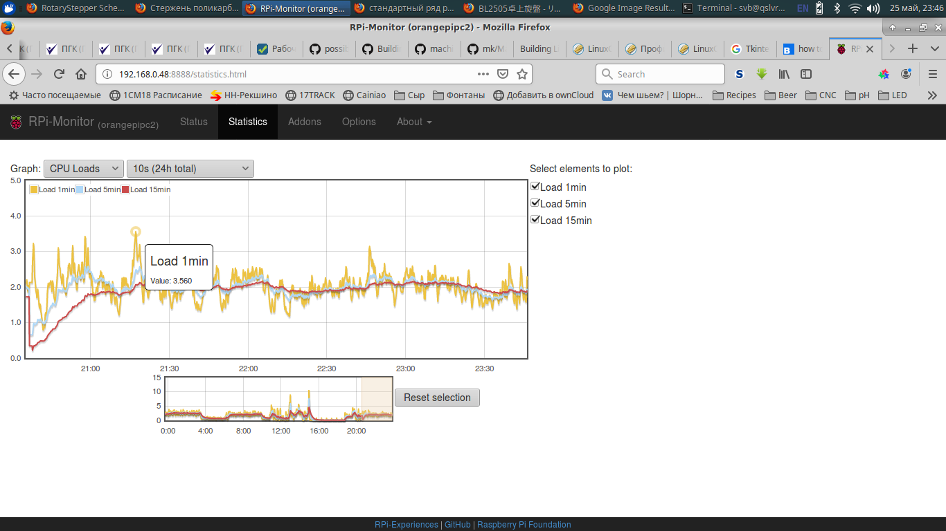 Итак, первый прогон....Jim Raynor писал(а):Ребята, столкнулись с одной проблемкой при работе с этой системой. При тестирования большой программы обработки после 3 часов непрерывной работы Orange неожиданно повис намертво, а после перезапуска той же программы опять завис но уже значительно раньше. Кроме того, если поверх открытого axis запустить например браузер, то система тоже зависает. Подскажите, кто в курсе, в чем может быть проблема? Используем Orange pi pc, шаговики nema17, драйверы tb6560.