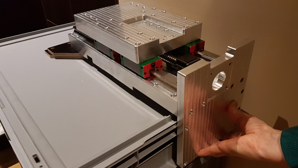 Да уж, не легко... главную плиту оси Z - 3 дня пилил с перерывами. В итоге, пару косяков есть, + фрезу сломал в отверстии..., хорошо она сломалась и на куски рассыпалась, сумел из отверстия вытащить. Адовое удовольствие сверлить отверстия фрезой 5мм на глубину 40мм...