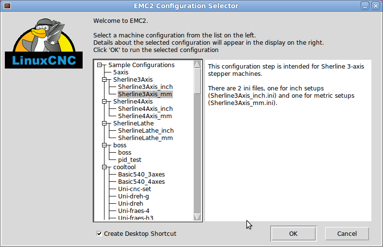 Machine configuration file is 'Sherline3Axis_mm.ini'