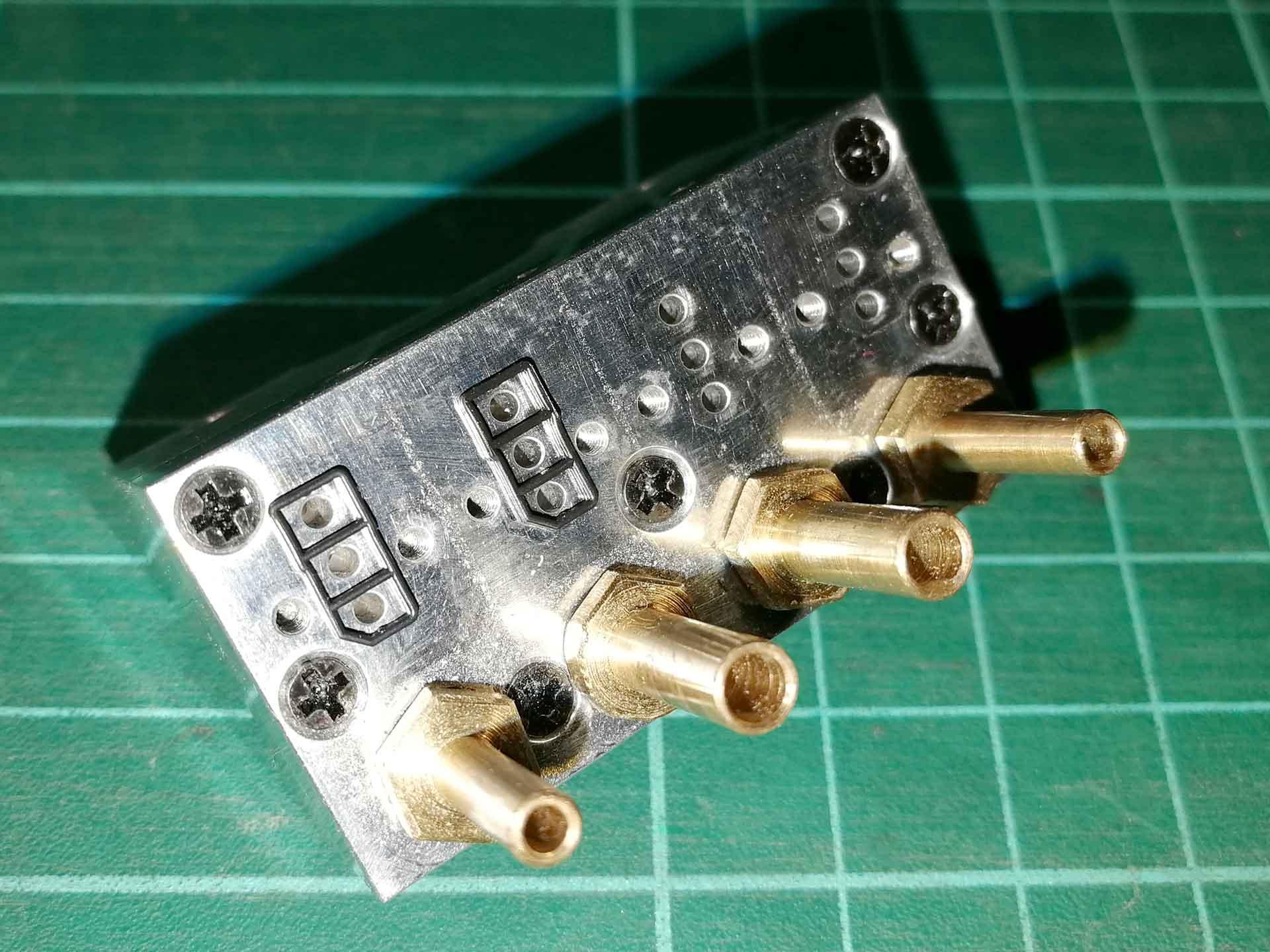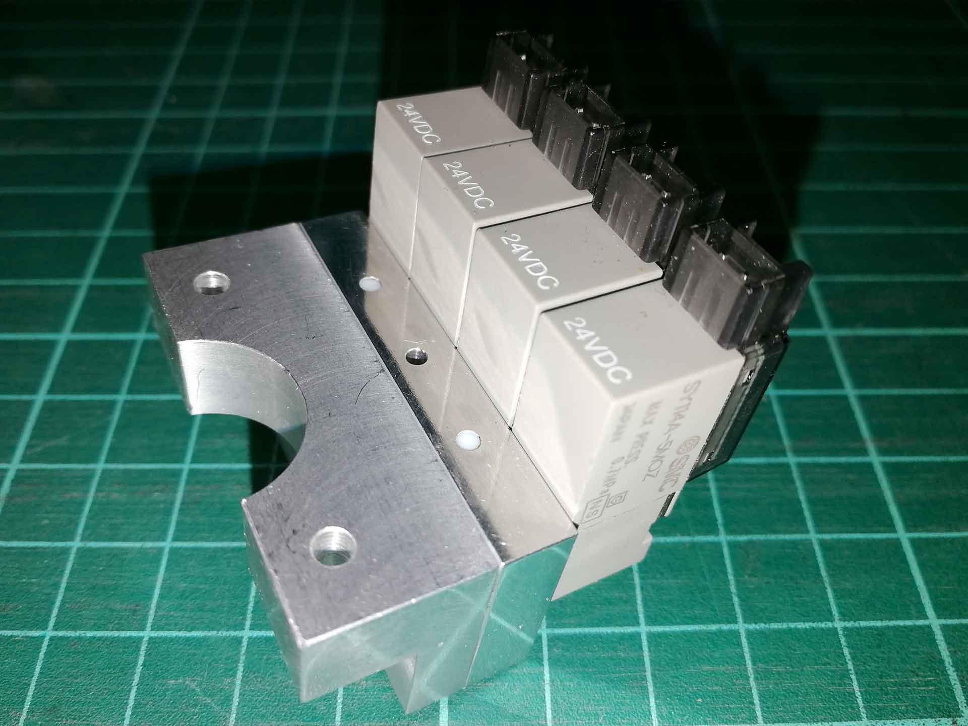 А соединить клапана трубкой? Конечно, эстетически это будет выглядеть не так красиво, зато легче - меньше перемещаемая масса на установочной головке, больше ускорение - и не нужна фрезеровка/уплотнения.