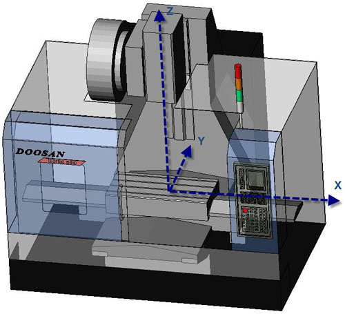 в кадах есть вид спереди(front) и вид сверху(top). когда смотришь в лоб - х смотрит вправо. так-же на станке. подхожу я к нему спереди, смотрю, и ось х получается вдоль портала. то есть передо мной, а не от меня. И так на всех станках. Ось х - перед тобой. А от того как нему подходишь в работе, и зависит направление. Это основное чем руководствуются.